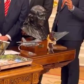 只相信力量,看“懂王”办公桌旁摆放的F-35、F-22、F-16、B-2模型