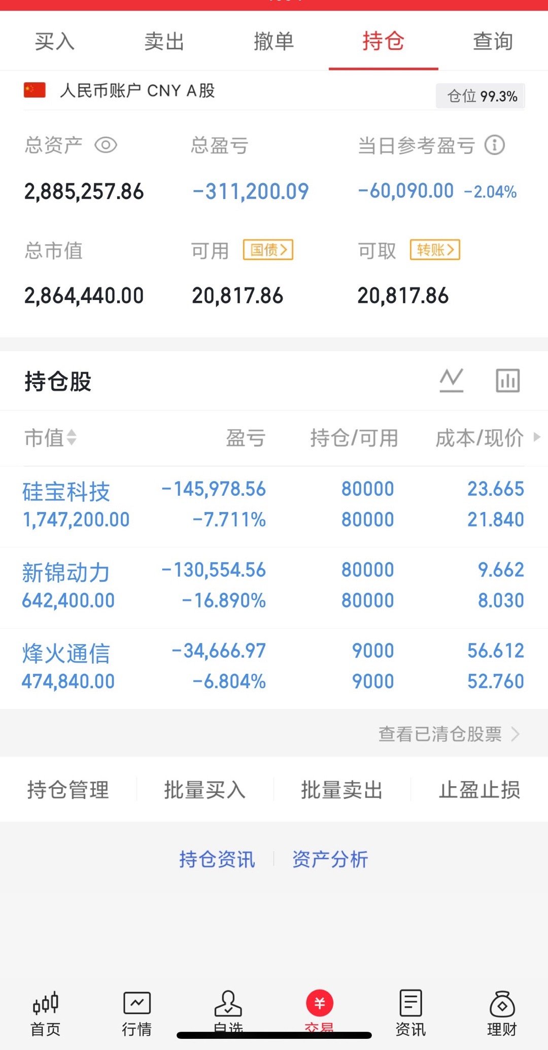 今日持仓票:硅宝kj、新锦dl、烽火tx