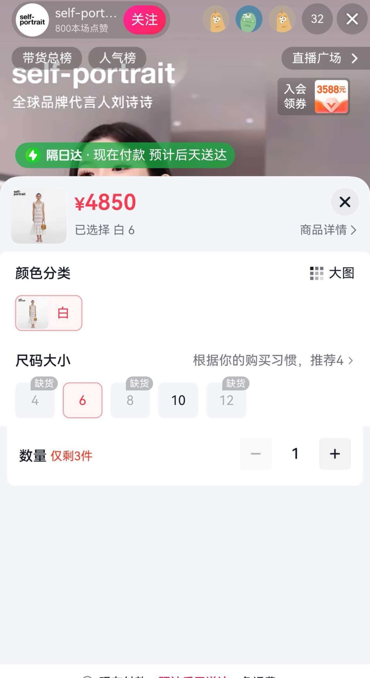 刘诗诗一代言self-portrait,同款立马卖断货,时尚女帝的粉丝还是太有实力了