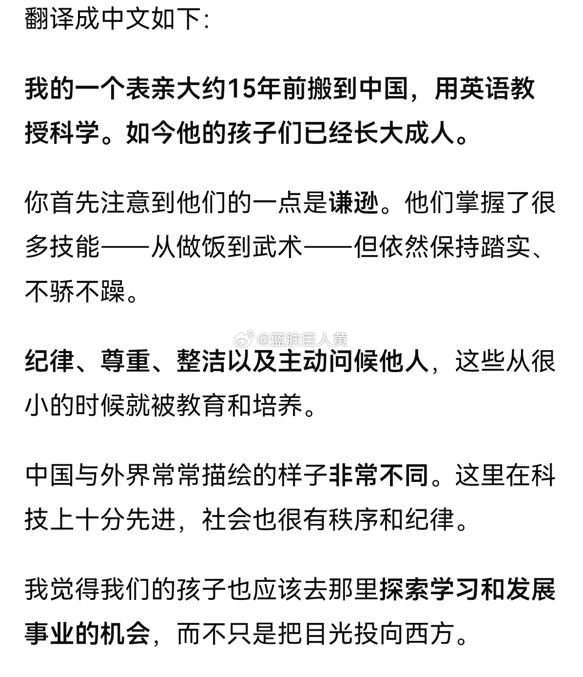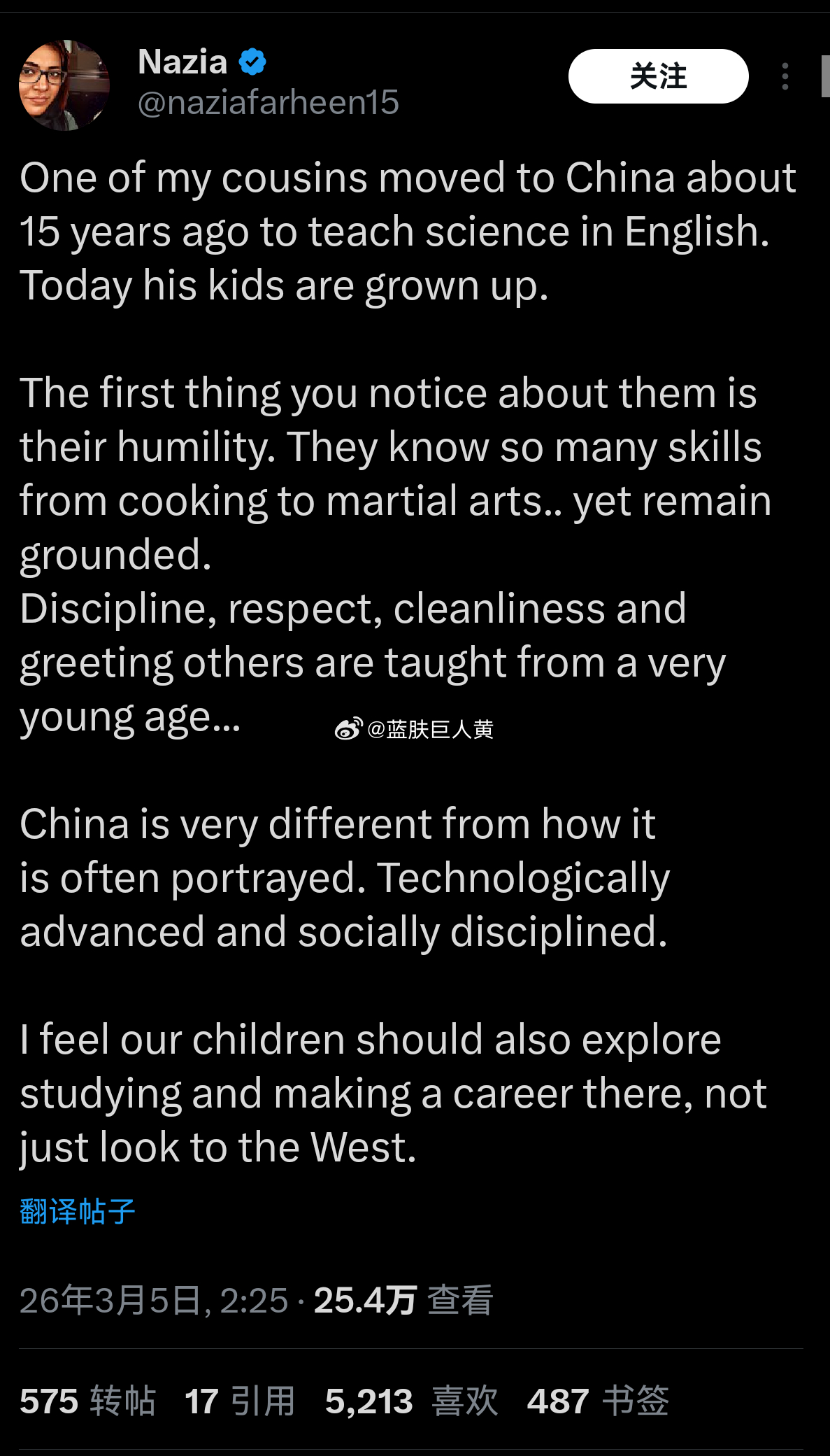 印度女博主在推上发帖,说她表亲在中国长大的孩子现在素质极高,推荐大家也把孩子送中国学习