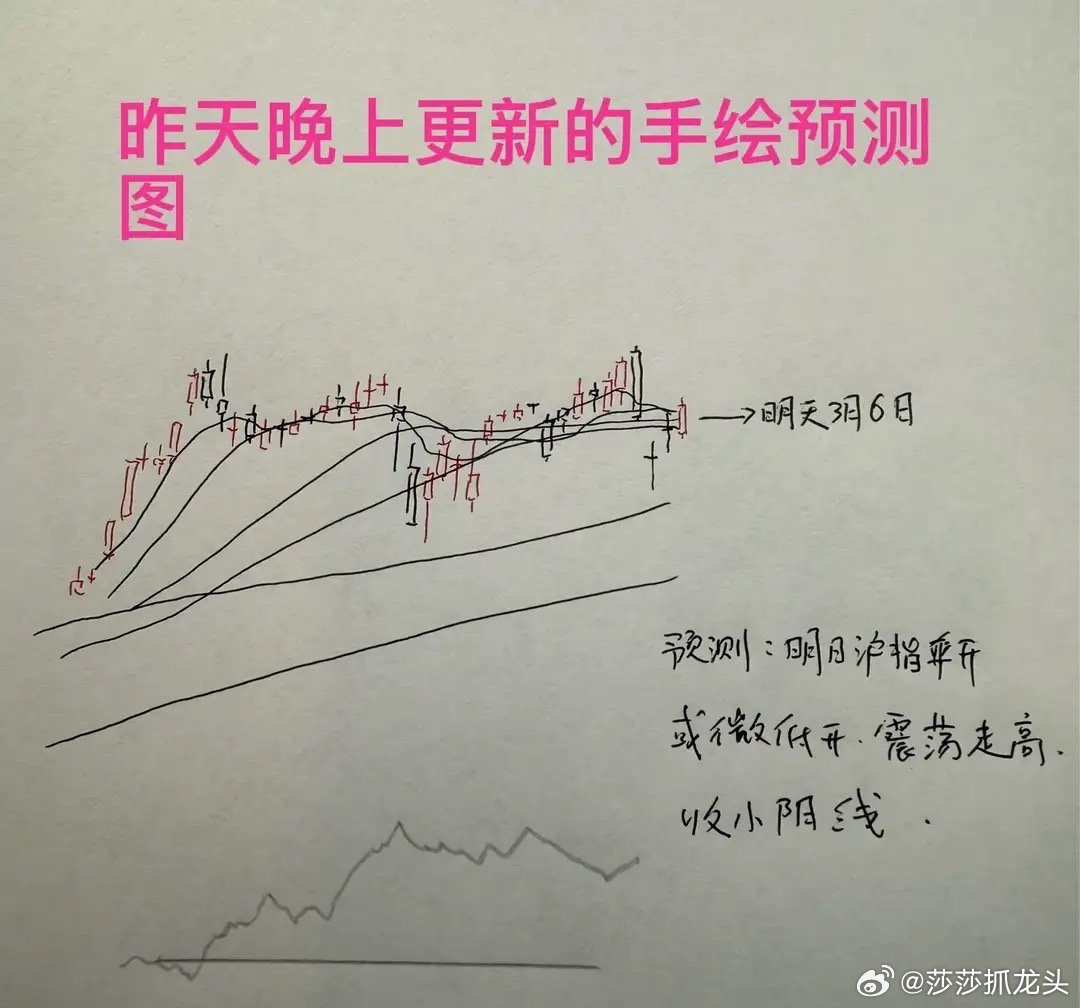 关于下一周一走势的手绘预测图,我将会在星期天上午更新。