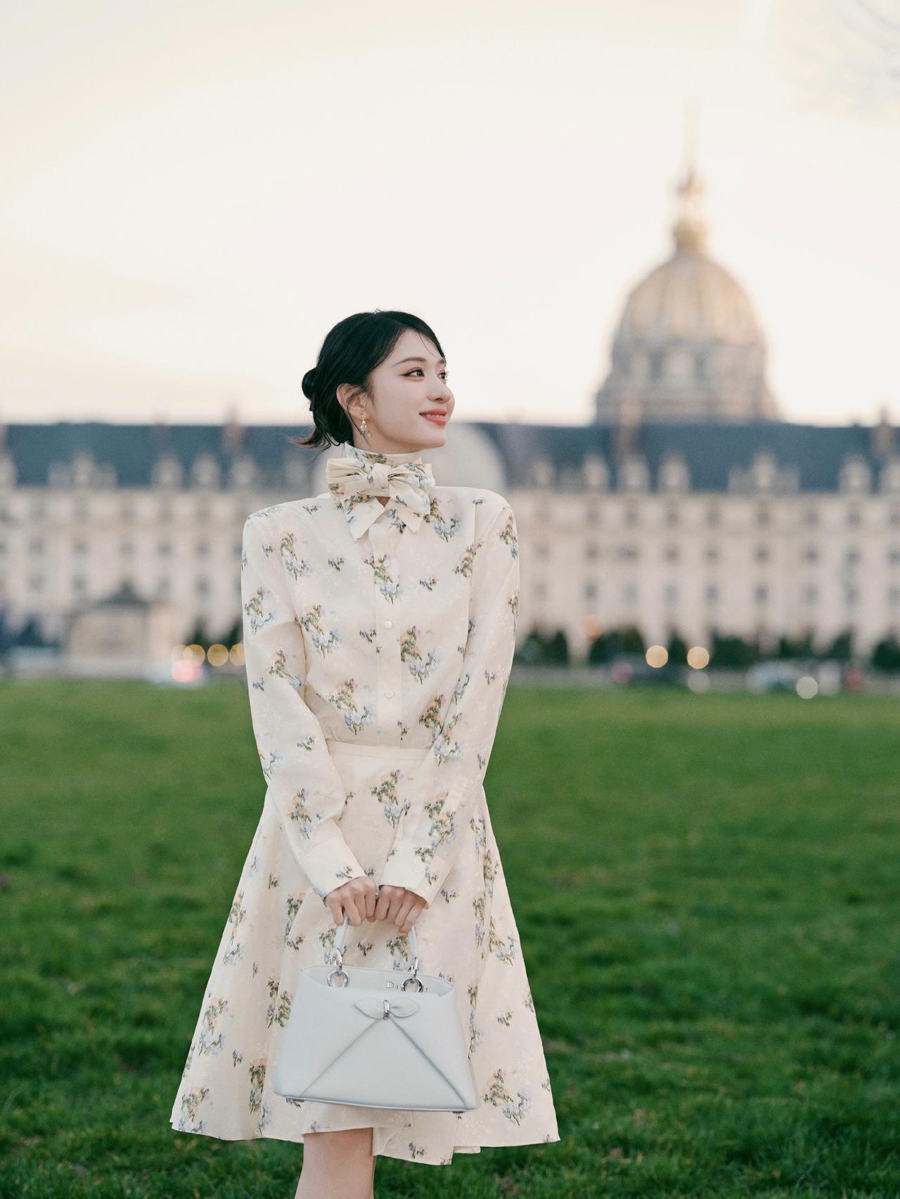 现身巴黎,一袭碎花长裙,巧笑嫣然,真的看一眼就很难忘!