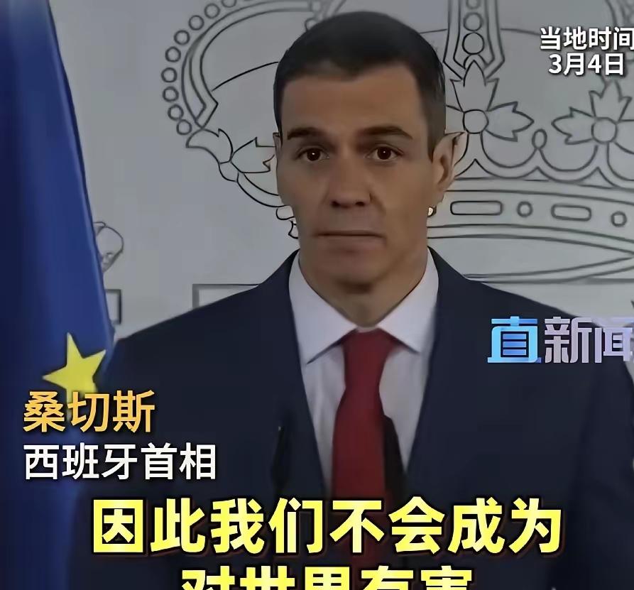 西班牙首相在美国总统威胁后公开表示,不惧报复,不做帮凶,不危害世界!3月4日,西班牙首相桑切斯公开表态,不会仅仅因为害怕遭到报复,就参与对世界有害、违背我们价值观和利益的事情中去! 麻烦各位读者点一下右上角的“关注”,留下您的精彩评论与大家一同探讨,感谢您的强烈支持! 强权施压从来不是国际交往的正道。桑切斯的这句话,戳破了单边主义的遮羞布。一个主权国家的选择,不该被威胁裹挟。 西班牙站在欧洲西南端,扼守直布罗陀海峡。它的每一次外交表态,都牵动着地缘政治的神经。跟着强权站队,或许能换一时安稳。放弃原则妥协,只会丢掉国家的根本底气。 世界政坛从不缺低头的角色。敢在大国施压下亮明底线的国家,寥寥可数。桑切斯没有用模棱两可的措辞回避问题。他把“不报复、不帮凶、不害世界”说得直白又坚定。 国家尊严从不是靠退让换来的。屈服于外部压力,只会让强权得寸进尺。西班牙清楚,依附式外交换不来真正的安全。违背本国利益与价值观的选择,终将被民众唾弃。 美国的威胁看似强硬,实则暴露了单边主义的焦虑。当下的国际格局,早已不是一家独大的时代。多极化的浪潮里,每个国家都有自主抉择的权利。强迫他国站队的做法,违背了联合国宪章的基本精神。 西班牙的外交立场,藏着对本国民众的负责。普通百姓要的是和平发展,不是被卷入无谓的对抗。政府的决策,必须锚定民生福祉与国家长远利益。跟风参与损害世界的行动,最终买单的还是本国人民。 23年前的伊拉克战争,给西班牙刻下了深刻的伤痕。那场被强权裹挟的战争,带来恐怖主义、移民危机与能源价格飞涨。桑切斯不愿让国家重蹈历史的覆辙。他把和平的底线,刻进了每一句公开表态里。 西班牙境内的罗塔海军基地与莫龙空军基地,主权牢牢握在自己手中。美西防务协定明确限定了基地的使用范围。无联合国授权、无北约框架的军事行动,根本不在许可清单里。西班牙不会把国土变成非法武力的跳板。 欧洲多国在大国博弈中反复摇摆。西班牙这次的表态,给欧洲自主外交添了一笔亮色。不做大国博弈的棋子,坚守中立与正义,才是中小国家的生存智慧。 特朗普以切断全部贸易相威胁,瞄准的是西班牙百亿欧元级的对美出口。这份经济压力足以让不少国家选择妥协。西班牙没有被眼前的利益吓退。它守住的不只是外交立场,更是一个国家的灵魂与骨气。 白宫发言人谎称西班牙已同意军事合作。西班牙外交大臣当场坚决否认。一字未改的立场,彰显着不容侵犯的国家主权。谎言在坚定的表态面前,瞬间被拆穿。 桑切斯直言,把盲目跟从视作领导力是一种天真。欧洲的未来,不该依附于外部强权的指令。自主判断、坚守国际法,才是欧洲立足世界的根基。西班牙用行动,践行着这份清醒与坚定。 国际法是国际秩序的基石,不是任人揉捏的橡皮泥。无授权的单边军事行动,本就站不住脚。西班牙拒绝为不义行动背书,守住的是全人类共同认可的规则。这不是对抗,而是对和平最真诚的守护。 西班牙民众用沉默的支持,回应着政府的坚定选择。街头的反战标语,民众的和平诉求,汇成了最坚实的民意底气。政府的立场,本就来自人民对安宁生活的向往。 历史反复证明,强权可以压服一时,压不垮长久的民心。那些坚持独立自主的国家,总能在国际舞台上站稳脚跟。妥协换不来尊重,骨气才能赢得真正的认可。 桑切斯的表态,不是刻意对抗,而是坚守底线。国家之间的交往,本该以平等尊重为前提。用威胁逼迫他国妥协,注定走不长远。 国际社会需要的是合作共赢,不是阵营对抗。西班牙的选择,契合了绝大多数国家的心声。维护世界稳定,不该由单一国家说了算。每个主权体都有权利说“不”。 从伊比利亚半岛的历史轨迹来看,西班牙从不缺坚守的勇气。面对外部干涉,这个国家曾多次守住自主的底线。如今的表态,是历史精神的延续,也是现实选择的必然。 单边主义的逆流,终究挡不住多边合作的大势。越来越多国家看清,依附强权不是出路。坚守本国价值观,维护世界共同利益,才是长久之道。 西班牙的勇气,给了其他国家启示。面对威胁不必畏惧,坚守正义不必退缩。主权在我,选择在我,这才是一个国家最硬的底气。 各位读者你们怎么看?欢迎在评论区讨论。