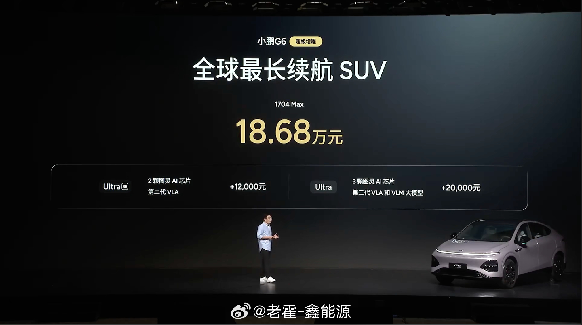 小鹏G6超级增程18.68万起 小鹏G6超级增程正式发布,18.68万起,3个版本分别是1704 MAX,Ultra SE和Ultra版本,我个人觉得现在小鹏的SKU搞得就很不错,只在智驾和座舱上做区别,其他的全部都是统一的