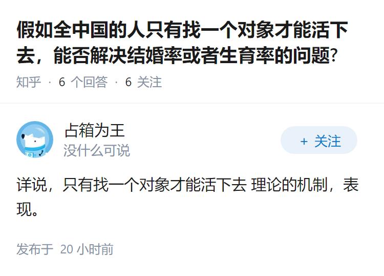 假如全中国的人只有找一个对象才能活下去,能否解决结婚率或者生育率的问题?