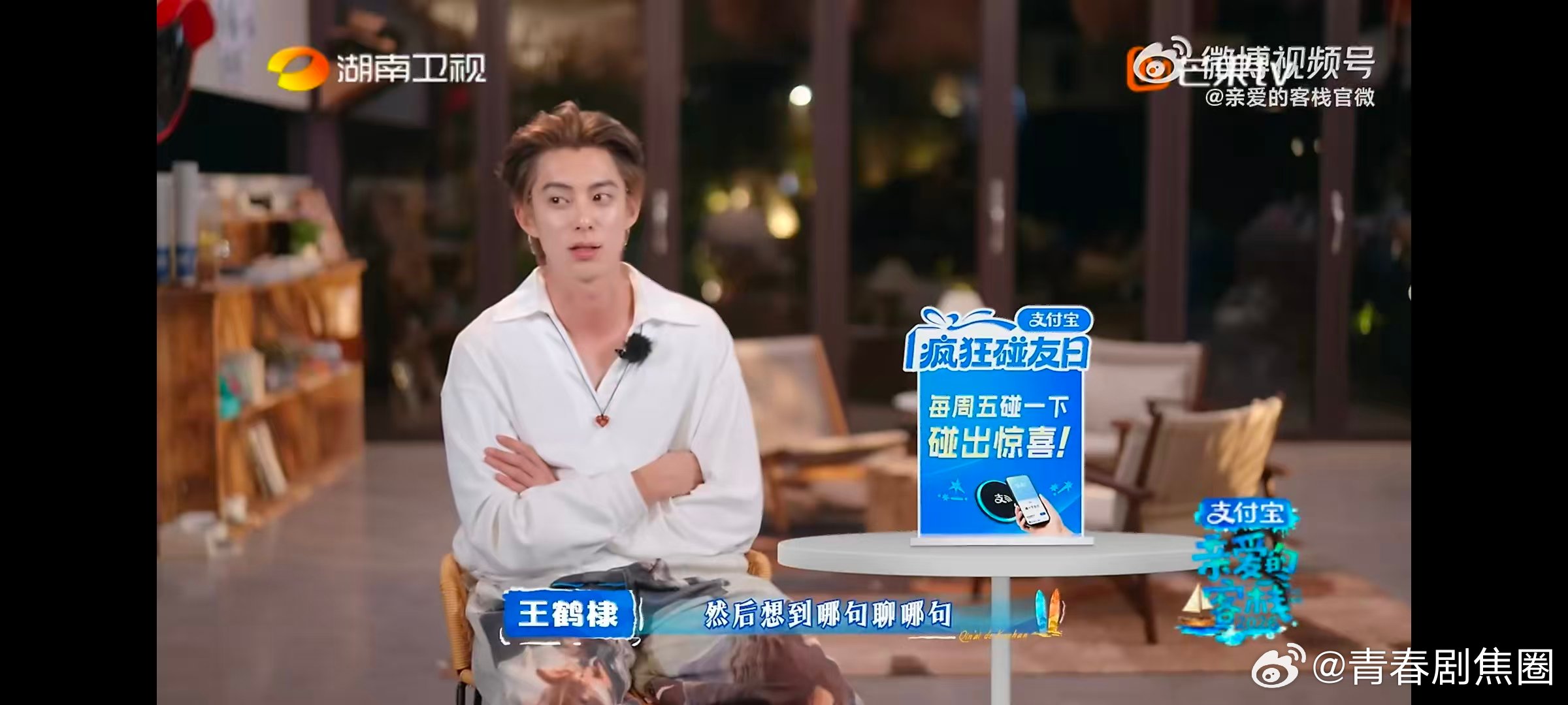 王鹤棣王鹤棣努力破冰亲爱的客栈不断抛话题积极接话,王鹤棣把破冰局拿捏得稳稳的,主理人超合格