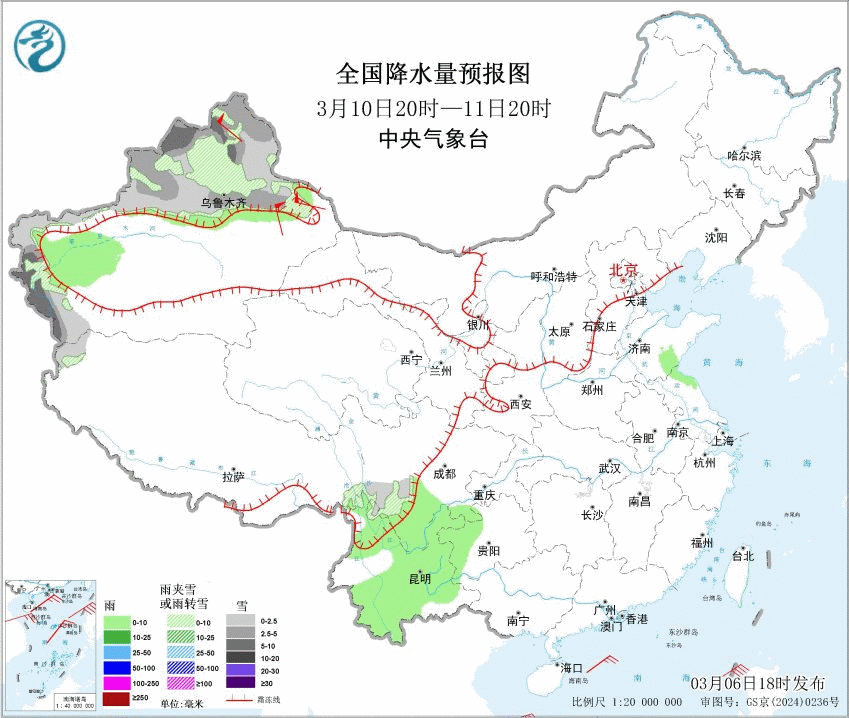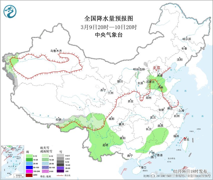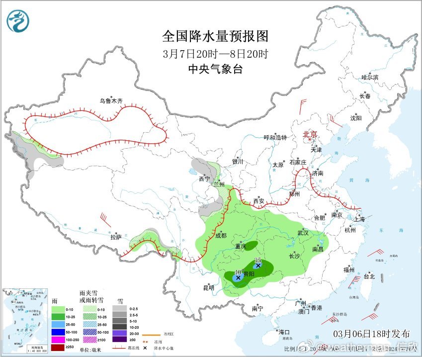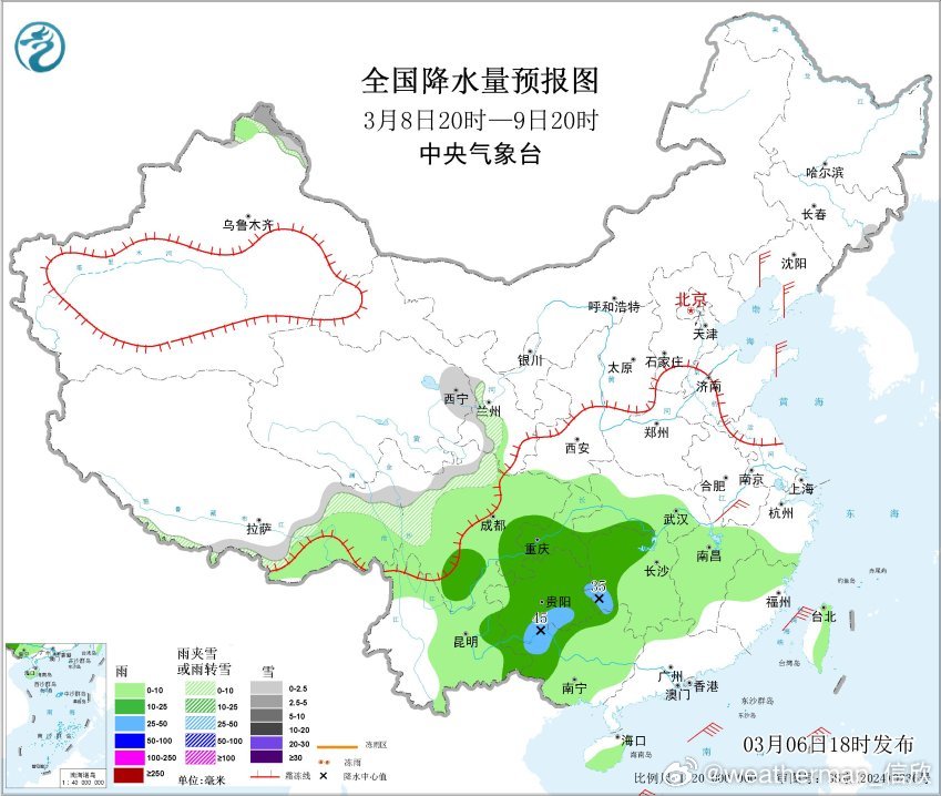 8日晚-9日降水继续南下并向东扩。在贵州广西湖南交界一带,还有大雨。10日南方的降水明显减少。而目前气象干旱明显的云南西部、四川西部在10-11日有望出现降水。此外,后期值得关注的是,10日晚-11日将有强冷空气影响新疆。这是西路冷空气,自带水汽,新疆的雨雪强度较大。