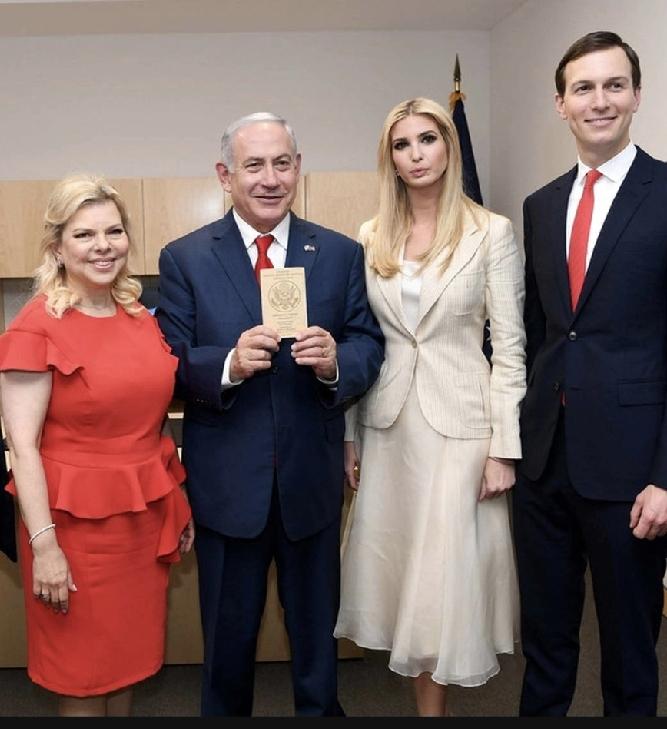 内塔尼亚胡夫妇和伊万卡夫妇。 富态的萨拉挺接地气, 高挑的伊万卡美出了天际; 两代人的既视感。