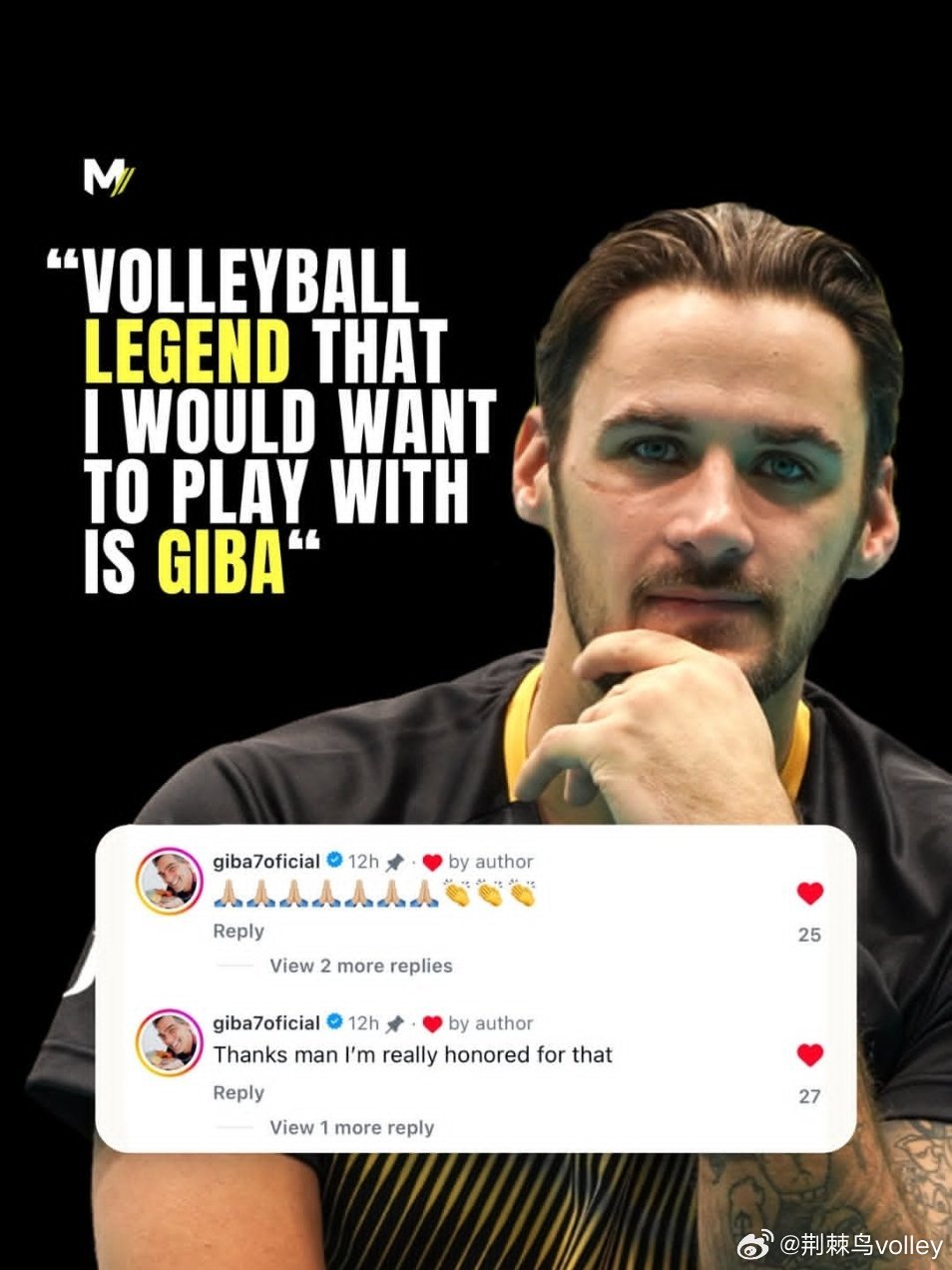 美国男排主攻德法尔科对外透露 :“自己最想与之并肩作战的排球传奇是巴西排坛名宿吉尔伯托(吉巴)”。