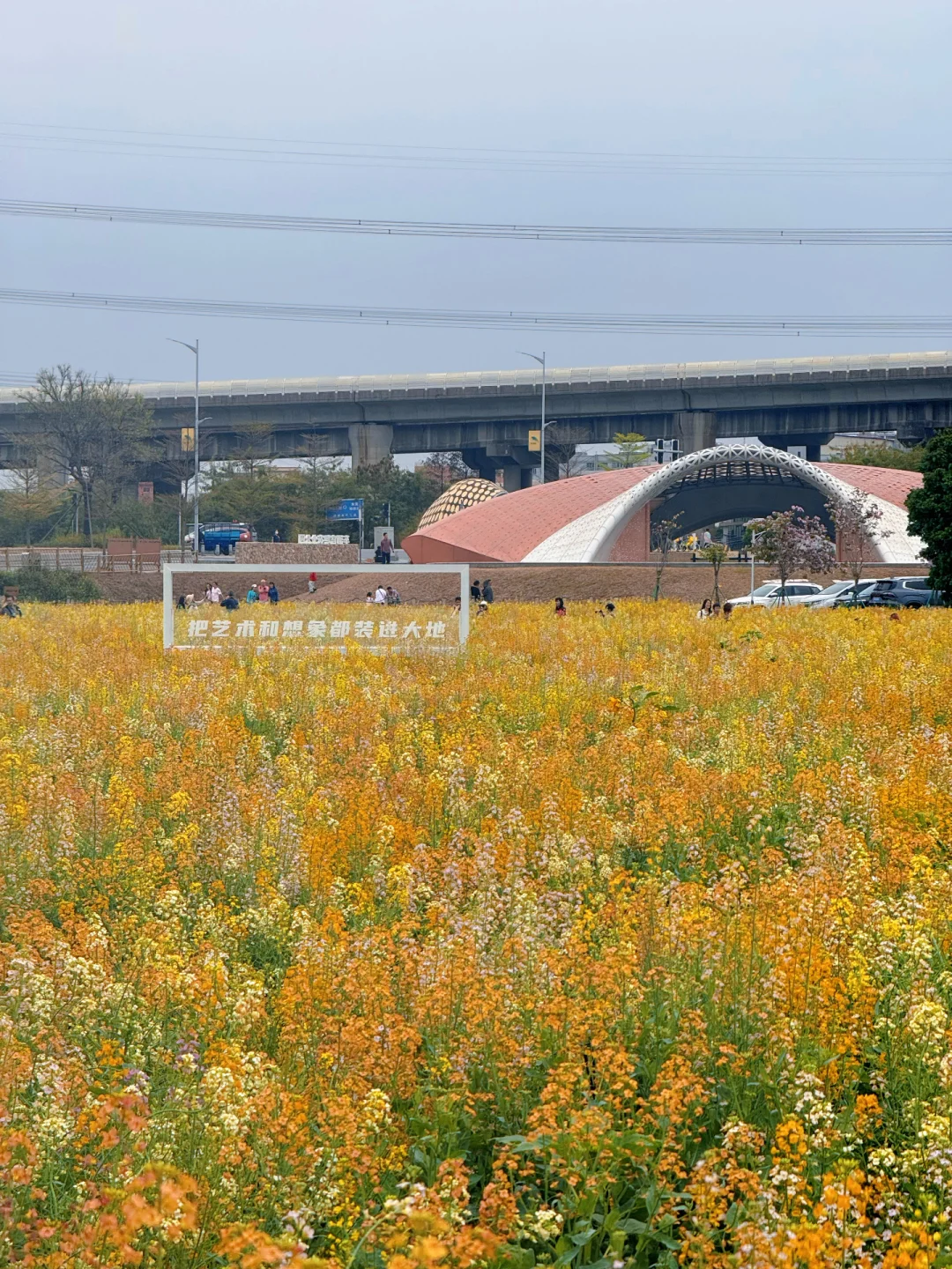 5️⃣登上公园里的观景台或者螺旋楼梯,俯瞰这片莫奈油画般的色块,视角震撼又治愈