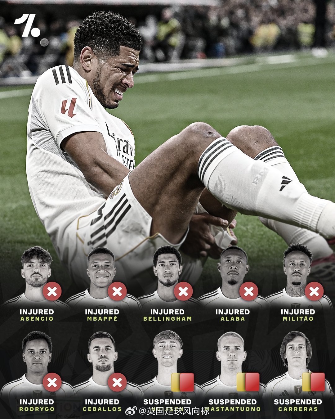 【人员危机!皇马10名球员伤停】本周末的西甲联赛,塞尔塔vs皇马,皇马一线队将有多达10球员因为受伤或者红黄牌停赛而缺阵。