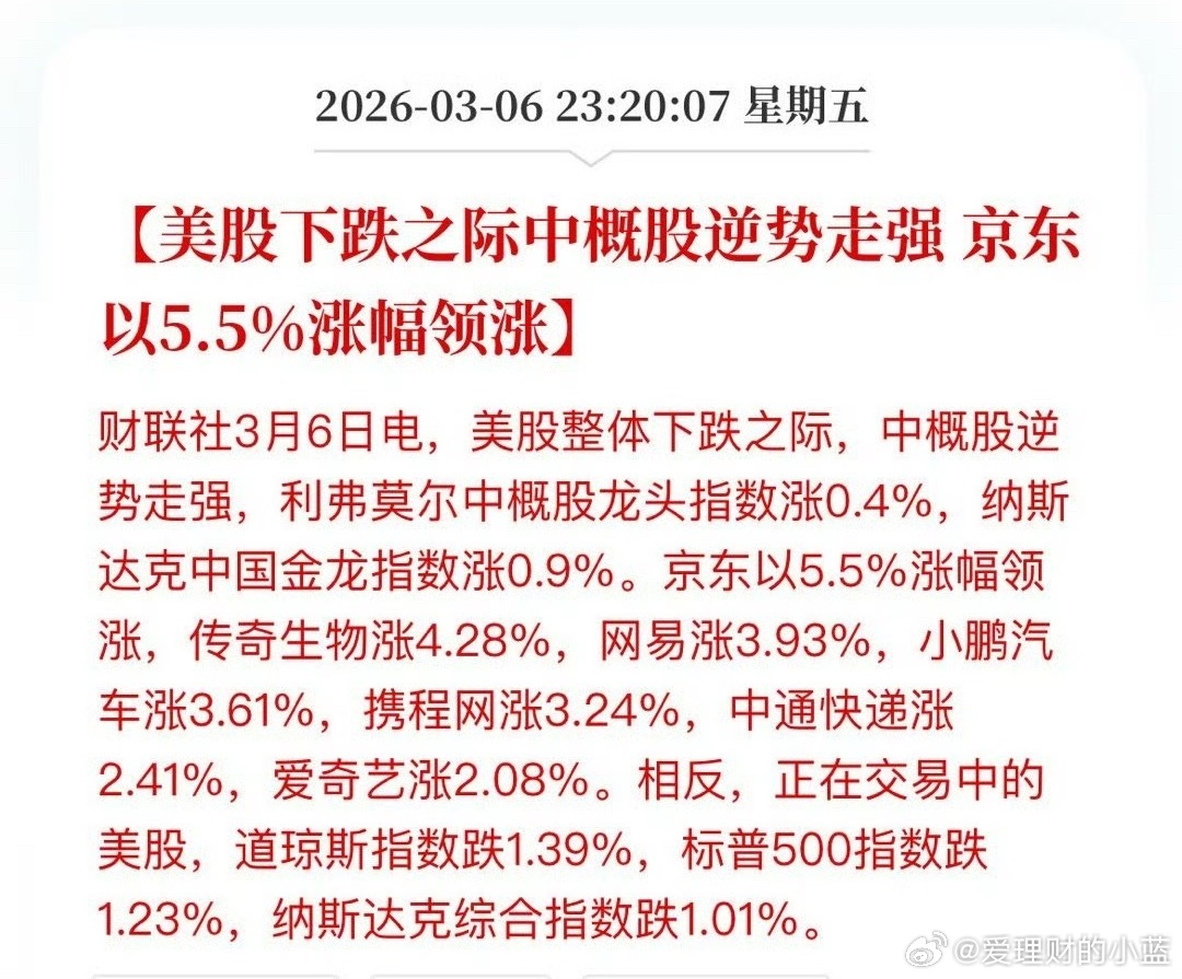 美股下跌之际中概股逆势走强。