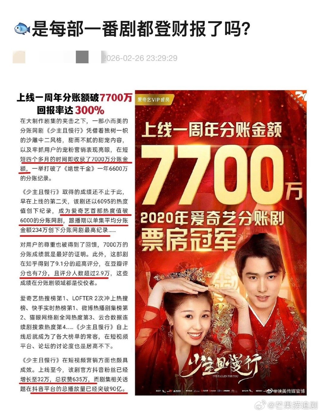 虞书欣一番作品都上平台财报的含金量
