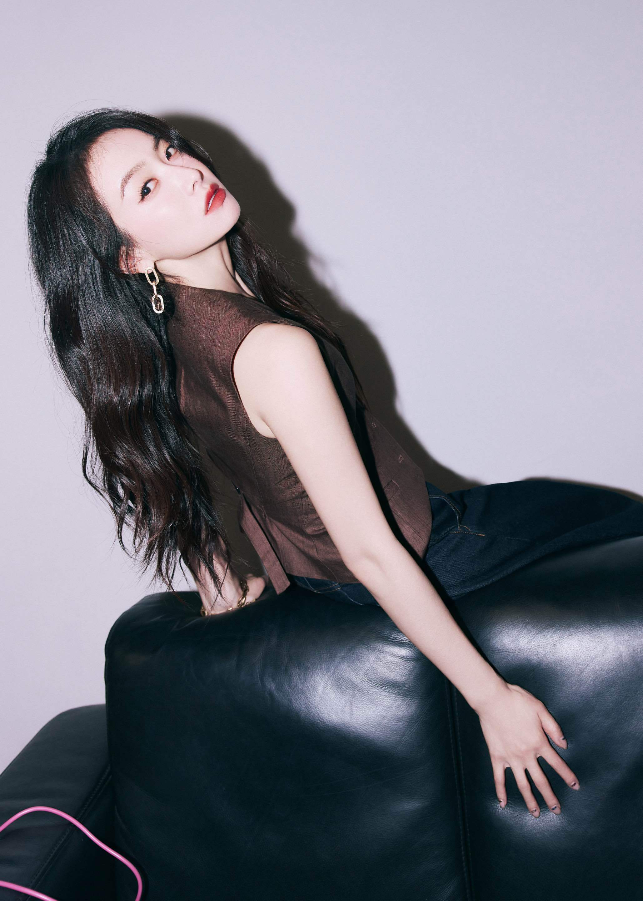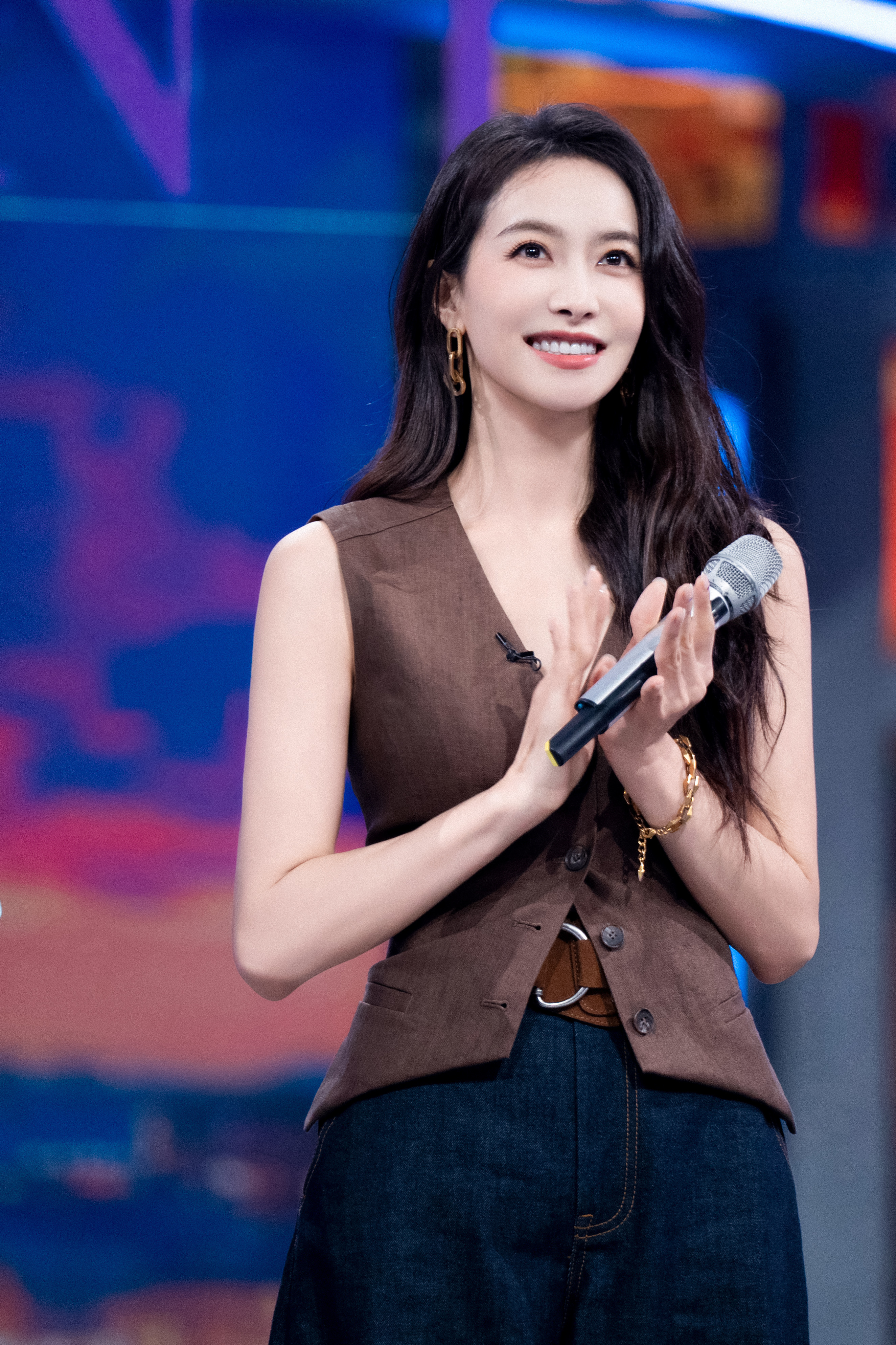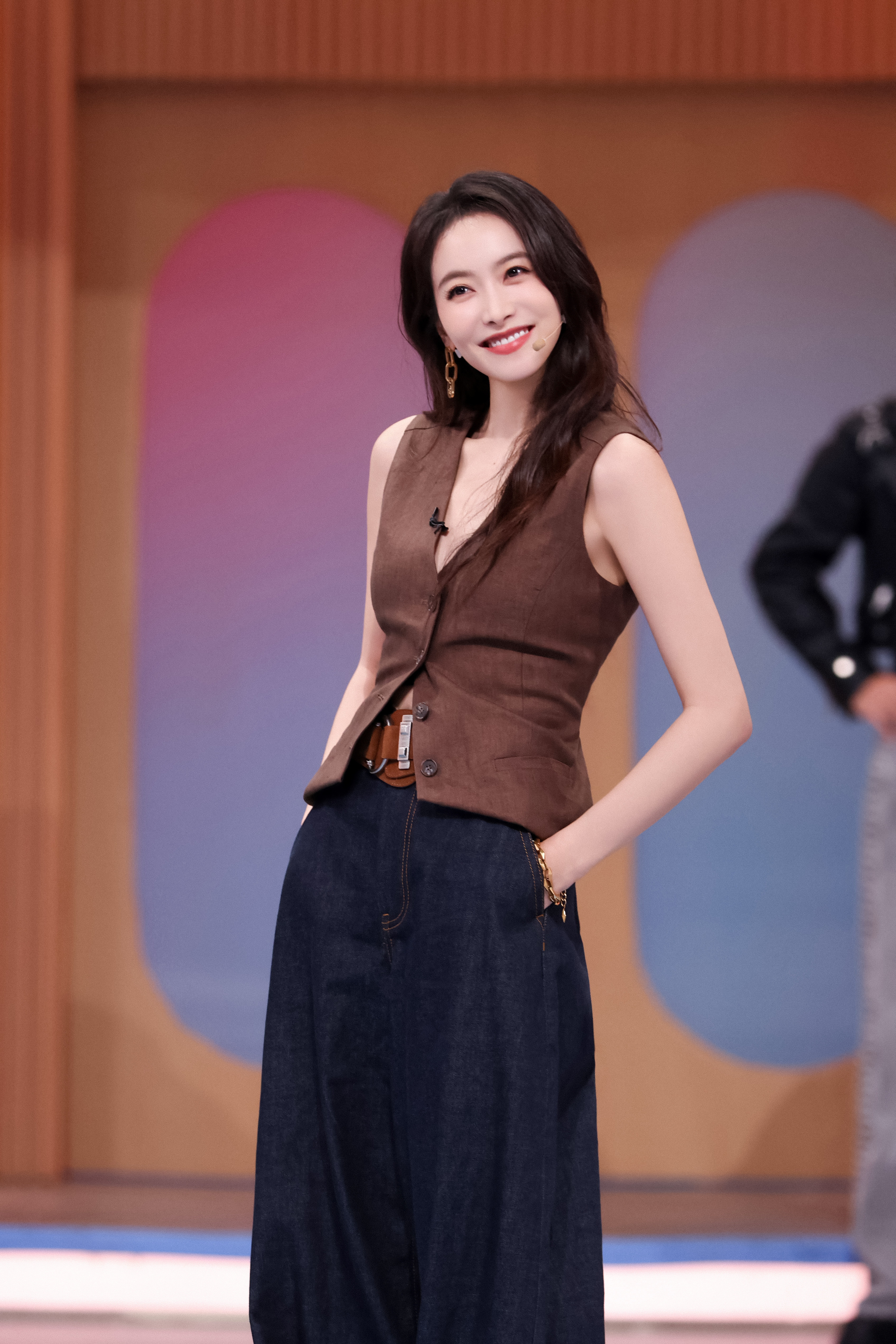 刘亦菲这条裤子挺养生,毕竟降温了肚脐眼必须护住啊