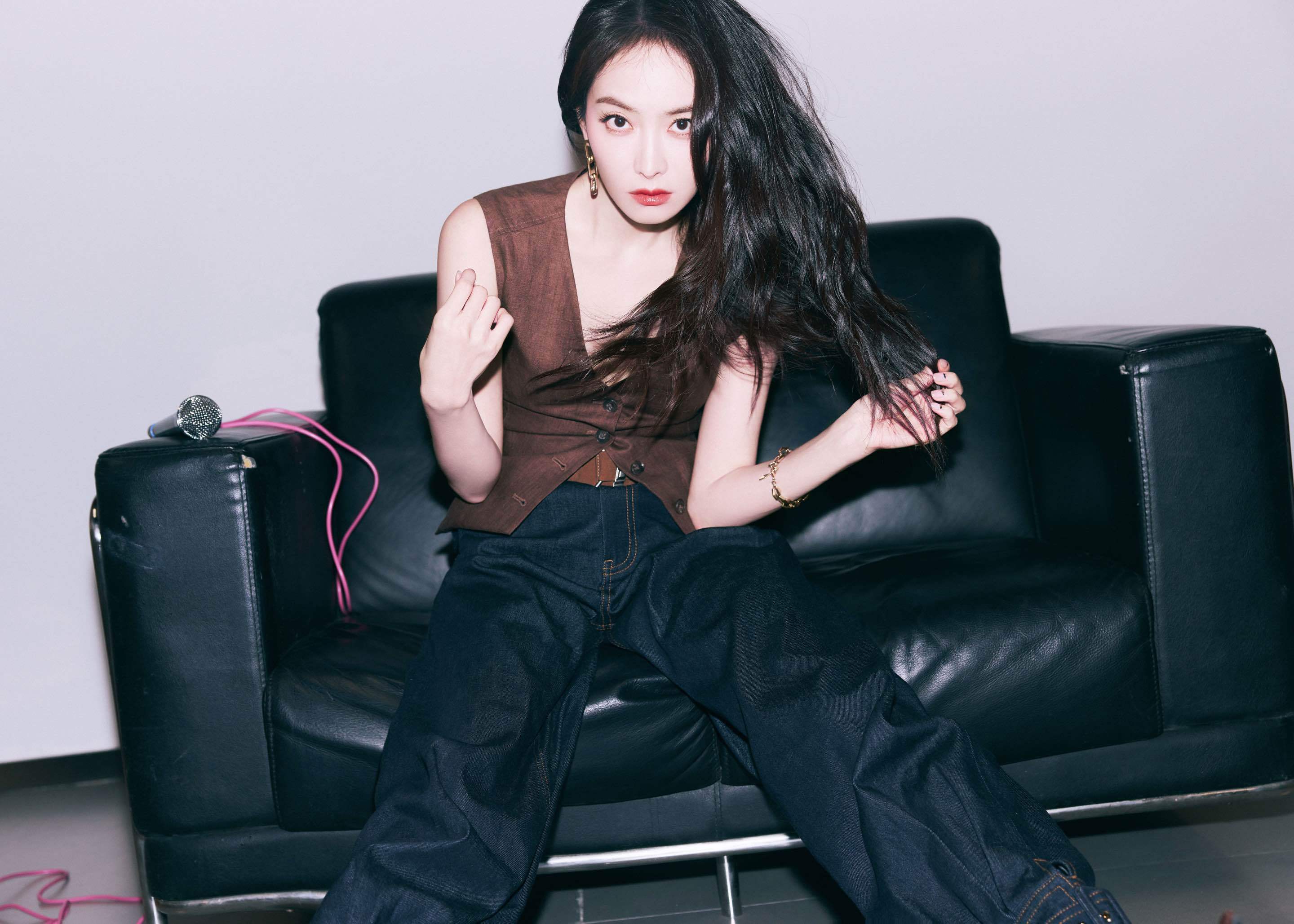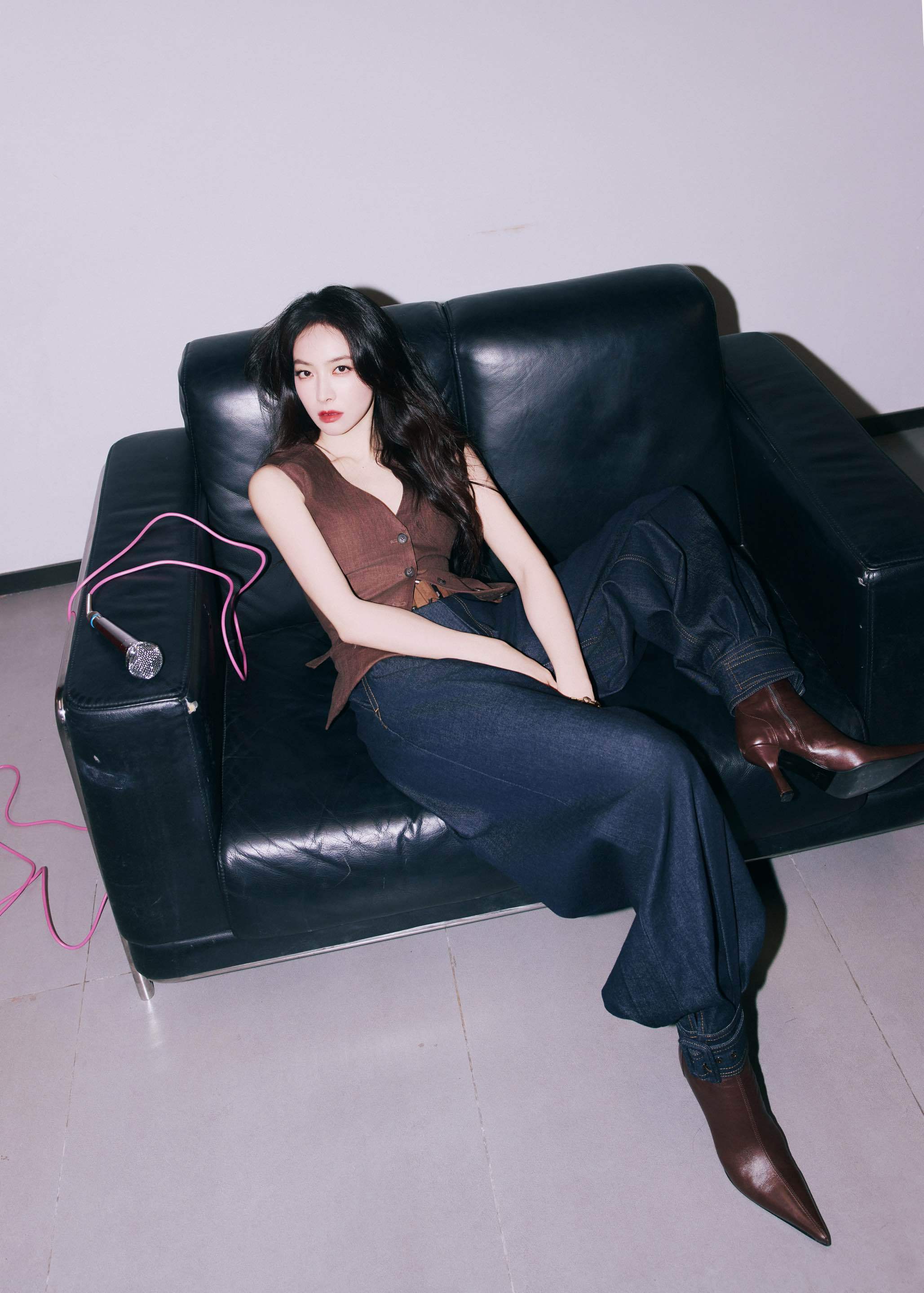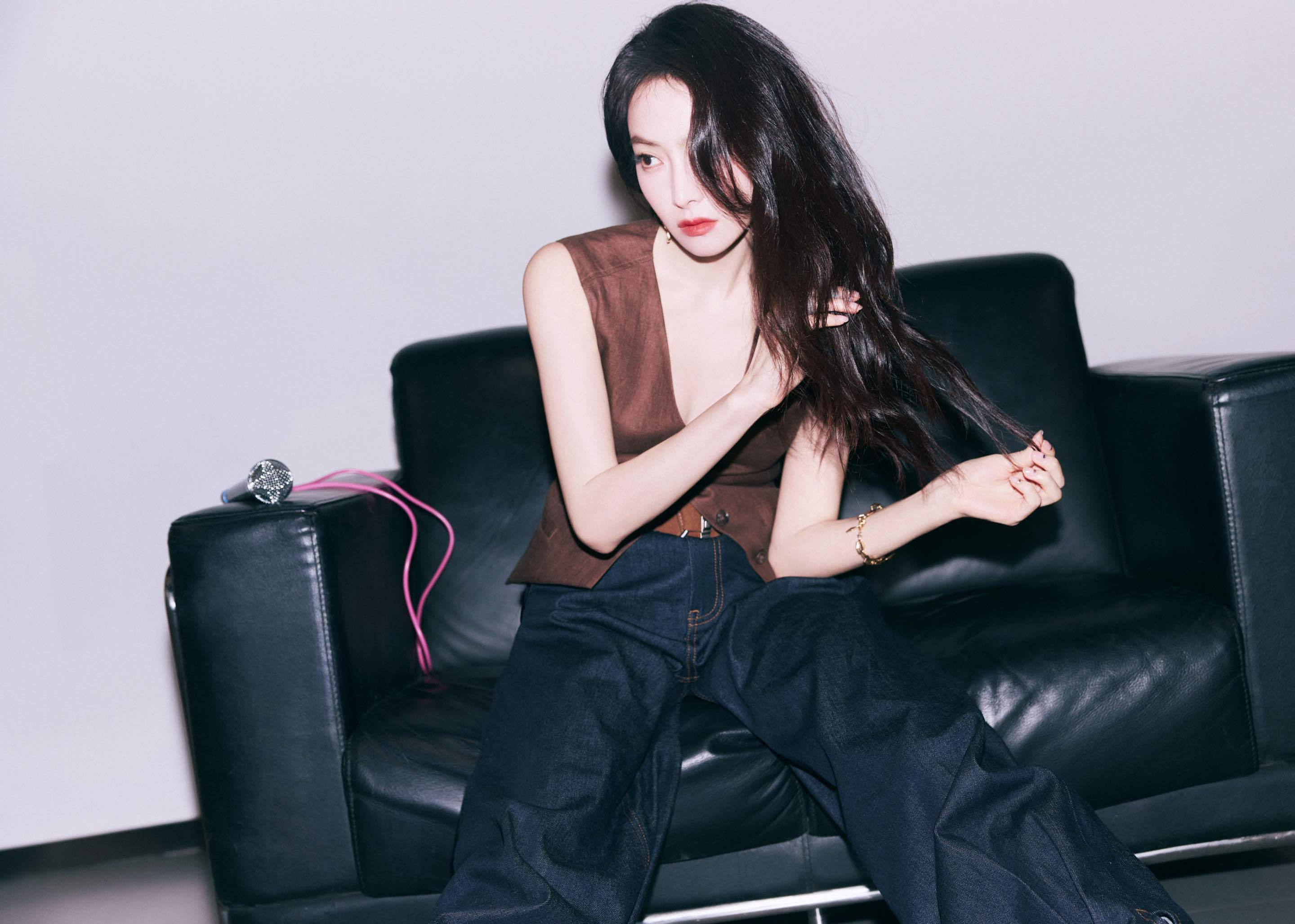 刘亦菲这条裤子挺养生,毕竟降温了肚脐眼必须护住啊