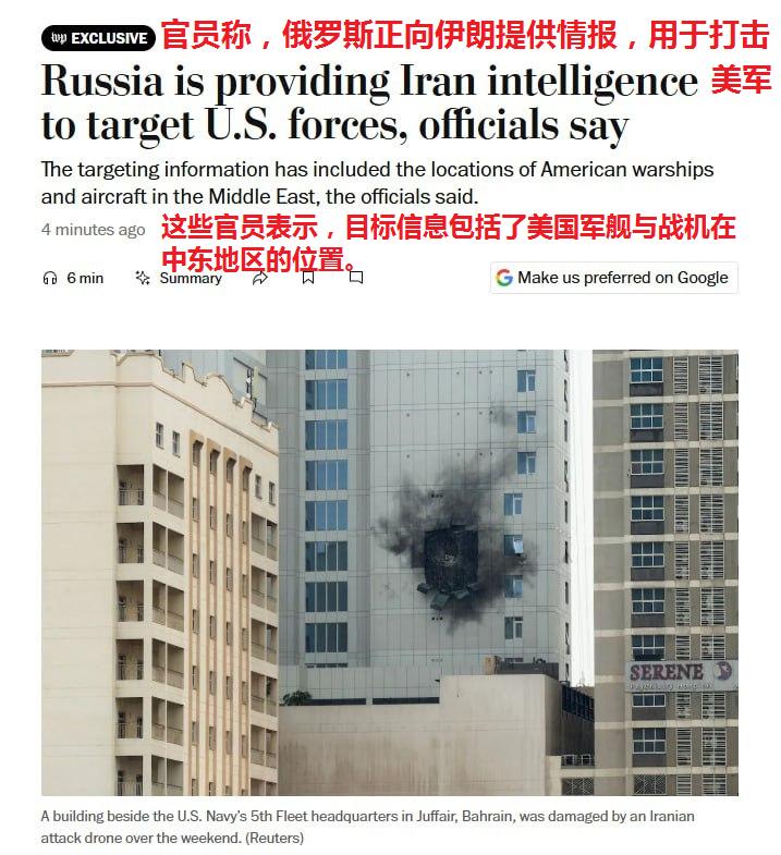 美国指责俄罗斯援助伊朗了! 华盛顿邮报说俄罗斯向伊朗提供情报用以打击美军,包括向伊朗提供了有关美国军舰和军机位置。 对于这个指责,如果俄罗斯反问,你们有向乌克兰提供过类似支持吗?美国该如何回答呢? 俄罗斯现在并不强壮,甚至有点虚弱,但是客观分析看来,还是有足够的理由援助伊朗,哪怕自己再苦一点。 从自身利益来说,俄罗斯应该向伊朗输血,无论是减轻自己的压力,还是推高油价,俄罗斯都希望伊朗坚持久一点。 不夸张的说,同一套装备,俄罗斯送给伊朗可能比自己在俄乌战场用的价值更高。 从地理条件来说,俄罗斯也方便给伊朗输送装备,因为二者通过里海相连,中间没有任何阻碍,和其他有条件支持伊朗的国家完全不同。 不妨再假设一种情况,伊朗彻底败了,被美国控制,那么里海的门户大开,这对于俄罗斯的安全有着极大影响。 正因为考虑到俄罗斯的反对和对伊朗可能的支持,以色列曾多次想攻击伊朗,但美国之前的多任总统都没有答应,后来直到特朗普,事情才发生了变化。 我想,一旦俄罗斯真的开始对伊朗提供支持,那么这场冲突就有得打了,美国想脱身,可能没那么容易了!