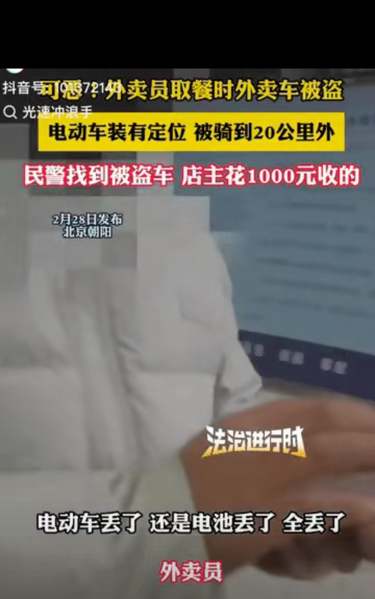 可恶!北京,外卖小哥进店取餐,出来时,电动车早已无影无踪,餐送不成,小哥气到报警,一查,发现车被骑到20公里之外,民警顺藤摸瓜,却在一电动车专卖店里发现小哥的车,民警问店主:偷的车你也敢收?店主紧张的说:我1000块钱收的,随后,立马说了一段话撇清嫌疑,然而,网友们却不买账。 在北京,一名外卖小哥进店取餐, 就短短几分钟的时间, 回头一看,自己天天跑单的电动车,直接没了! 这车,是他全家的收入来源, 是他风里雨里跑单的全部底气, 没了车,单送不了,钱赚不到, 一家人的生活费瞬间断了档。 小哥当场气到发抖,立刻报警。 万幸的是,车上装了定位! 民警一查轨迹,车已经被骑到20公里以外。 一路追查,最后在一家电动车专卖店里,找到了这辆车。 面对民警,店主当场慌了: “我花1000块收的,我不知道是偷的!” 一句话,想把自己撇得干干净净。 结果网友们直接炸了: 你当大家傻吗? 🔥网友评论区太真实了: “外卖车带跑单箱、租电池,明眼人一看就不正常,开店十几年能不懂?” “没发票、没手续、低价收车,不是销赃是什么?” “抓到就说不知道,抓不到就高价卖,良心不会痛吗?” “正规收车必须登记身份证+查发票,他啥都没有就敢收,摆明了装傻!” 真的太心疼外卖小哥了。 零下的天气,跑一单几块钱, 风吹日晒,忍气吞声, 一辆电动车,就是他的全部家当。 小偷可恨, 但没有销赃,就没有偷盗。 如果店家都守住底线,不收来路不明的车, 小偷根本无处变现。 偏偏总有人为了小利, 睁一只眼闭一只眼, 纵容恶行,压榨底层。 从法律上讲: 不明手续、低价回收、外卖专用车+租电一体 已经完全构成“赃物嫌疑”。 一句“我不知道”,在法律面前根本没用! 轻者罚款拘留,重者刑事犯罪, 老板这次,真的栽了。 💬我的心里话: 谁都不容易,但别赚黑心钱。 底层人不坑底层人, 才是这个社会最该有的温度。 支持严惩偷车贼+无良店家的, 评论区扣1!
