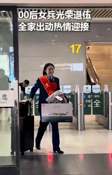 上人民日报了!浙江杭州,00后女兵退伍,原以为只是爸爸妈妈来迎接,没想到当她右手拖行李箱,左手手提J20航模到达出口时,一大家子都在出口迎接,齐声大喊:欢迎回家!网友说:太飒了,当过兵气质就是不一样! 这位00后女兵名叫妞妞,两年前怀揣着报国梦应征入伍,在军营里摸爬滚打,褪去了青涩娇气,练就了一身挺拔利落的军人气质。 退伍返乡这天,妞妞特意把部队赠予的歼-20航模紧紧提在手里。这不仅仅是一个模型,更是她两年军旅生涯的荣誉与纪念,是刻在骨子里的家国情怀。她一路上都在期待和父母重逢,心里还悄悄想着,见面要好好撒个娇,诉说这两年的思念。 可当她迈着沉稳的步伐走到出口,抬头的一瞬间,整个人都愣住了。眼前不是只有父母,爷爷奶奶、叔叔阿姨、哥哥姐姐、堂弟表妹……近二十位家人整整齐齐站成一排,手里捧着鲜花,眼神里满是骄傲与期盼。没等妞妞反应过来,全家人不约而同、中气十足地齐声喊出:“欢迎回家!” 这一声呐喊,响彻了整个出口大厅。妞妞瞬间红了眼眶,手里的行李箱和航模都微微颤抖。她没想到,自己只是履行一名军人的职责,却被全家人如此郑重地迎接。家人们一拥而上,拥抱、问候、递花,温暖瞬间将她包围。两年军营的苦与累,在这一刻全都化作了幸福的泪水。 视频里,妞妞身姿挺拔、眼神坚定,即使穿着便装,也藏不住军人独有的飒爽与正气。那架歼-20航模在人群中格外亮眼,象征着年轻一代军人的信仰与担当。这段没有彩排、没有摆拍的真实画面,打动了无数网友。 有网友说:这才是我们该追的星,青春献给军营,归来仍是少年! 还有网友说:歼-20航模+全家迎接,这是独属于中国军人的浪漫与荣光! 真正的气质,从来不是靠打扮装出来的,而是在军营里千锤百炼的责任与担当。 00后用行动证明,年轻一代扛得起家国重任,守得住心中信仰。 这一幕,既是亲情的团圆,更是荣光的归来,值得我们每一个人点赞致敬。