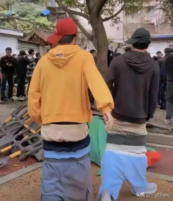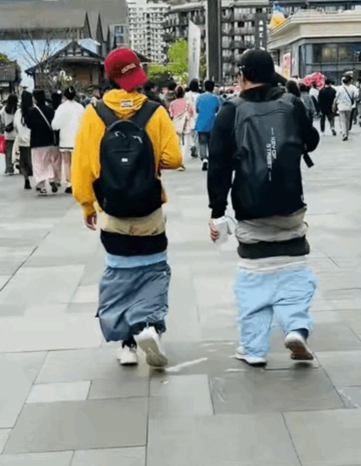 在成都太古里,看见两个怪物。 在还以为他们是侏儒,是短腿矮脚人。 其实不是。 他们也和我们一样的身高。 只是不明白,他们为何要这样的装束。 裤子都掉到膝盖上了。