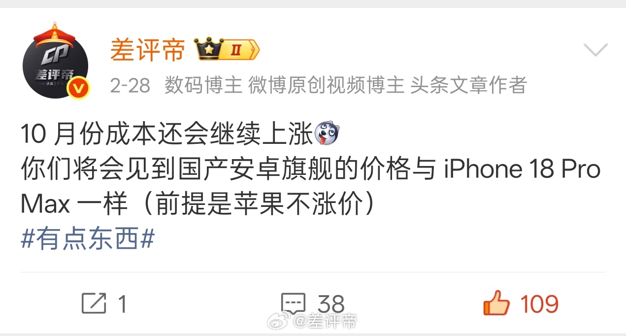 现在就是这么个情况10 月份还有新一轮成本爆涨,比内存涨价都猛到时候看苹果涨不涨价了不涨价,国产顶级旗舰就要追平苹果了