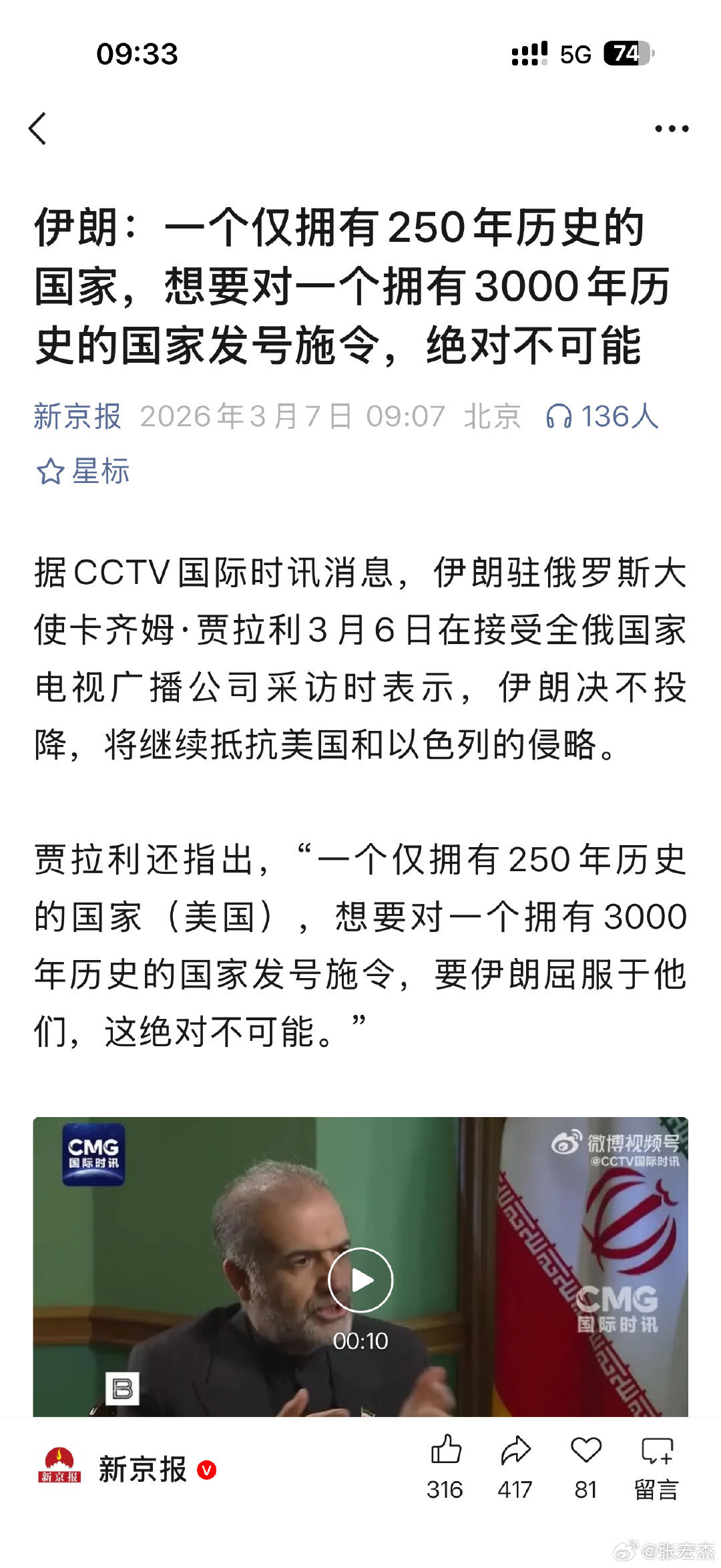 #多方就美以对伊朗袭击发声#【俄罗斯、欧盟、法国、马来西亚等多方发声】以色列和美