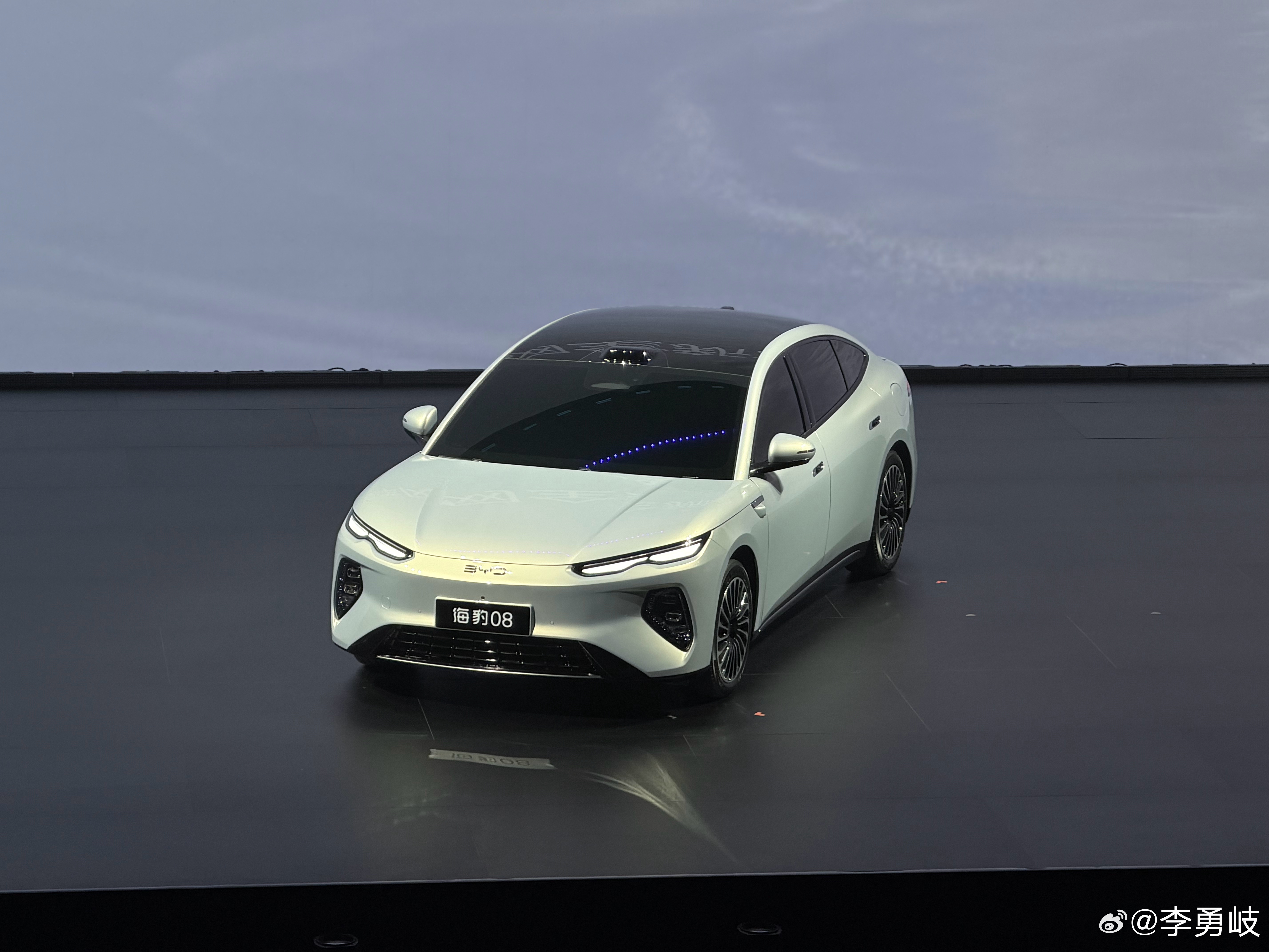 最美比亚迪轿车?海豹08首发亮相:纯电续航有望突破1000km,二季度内上市!3月5日,比亚迪海豹08首发亮相,新车定位中大型轿跑,搭载比亚迪最新技术,包括闪充、第二代刀片电池、后轮转向、辅助驾驶、云辇A等,官方表示新车将于第二季度上市。猜测价格区间将在30-35万元之间。新车延续比亚迪Ocean-S概念车的设计风格,车头采用封闭式格栅,两侧大灯底部呈现波浪形状,修长的大灯更加科幻,两侧的导流槽还有星辉的氛围灯,整个前脸流线动感,车顶上方配备激光雷达。大家一起来感受下,比亚迪终于把颜值这一块搞上去了?海豹08