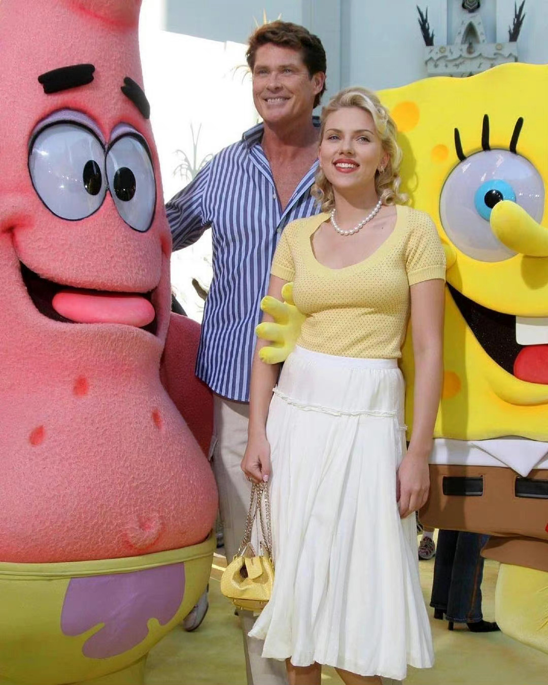 2004年出席电影《海绵宝宝历险记》首映礼的斯嘉丽·约翰逊