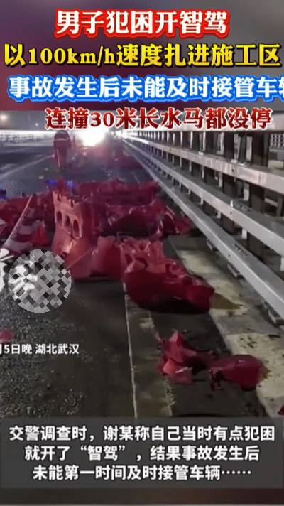 高速惊魂!武汉绕城高速上演惊险一幕。3月5日晚20时45分许,夜色笼罩下,部分路段正在施工的高速上,水马整齐排列,指示牌醒目提示车辆避让。然而,谢某驾驶的车辆却如脱缰野马般,以100km/h的时速径直冲向施工区域。 原来,谢某当时已犯困,想着开启智驾功能就能放松一下,便启动了该功能,随后注意力逐渐分散。车辆毫无避让之意,一头扎进施工区,接连撞飞30米长的水马,直至撞上指示牌才停下。监控画面中,车辆撞击水马瞬间仅轻微修正方向,便继续高速冲撞,场面惊心动魄。 幸运的是,车上人员都规范系好了安全带,未受到伤害,仅车辆和施工设施遭受损坏。面对交警调查,谢某懊悔不已,称自己以为开了智驾就没事,没料到会发生事故,等反应过来已来不及接管车辆。 这起事故再次为人们敲响警钟,智驾是“辅助”而非“替代”。当前智驾功能未达完全自动驾驶水平,在复杂路况下识别能力有限。广大车主切勿因开启智驾就放松警惕。 高速智驾事故警示 安全驾驶需牢记天南地北大拜年 你在开车时会使用智驾功能吗?有没有遇到过需要紧急接管车辆的情况呢?欢迎在评论区分享。