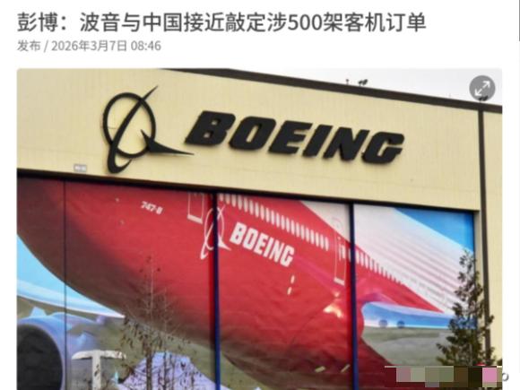 美国媒体爆了一个大消息!美媒称,波音与中国即将敲定涉及500架客机的超大订单?3月7日,彭博社引述知情人士消息称,美国航空巨头波音接近与中国方面达成近10年来首个重大飞机订单,涉及约500架波音737 MAX客机,预计将在美国总统特朗普访华期间公布。但知情人士提醒,在当前复杂的地缘政治环境下,波音获得大规模订单仍存在变数。 可能很多人会疑惑,为什么是500架?为什么偏偏是波音737 MAX?这背后其实是双方各自的现实需求,绝非偶然。 就说波音,作为美国制造业的代表性企业,这些年日子并不好过,从2025年的财务数据来看,虽然全年实现盈利,但季度表现波动较大,一季度甚至出现小幅亏损,清理库存、稳定订单对它来说至关重要。 而中国市场,一直是波音的“关键阵地”,曾经中国运营的一半商用客机都来自波音,巅峰时期波音在中国的销售额接近120亿美元,占其总营收的近13%,更重要的是,中国市场约占波音商用机订单积压量的10%,拿下中国的订单,无疑能帮波音缓解财务压力、提振市场信心。 再看中国这边,随着国内经济复苏,民航市场也迎来强劲反弹,空客曾预测,到2042年中国将需要超过9440架新飞机,其中大部分是单通道客机,而波音737 MAX刚好属于这类机型,适配国内大多数航线的需求。 而且,波音737 MAX经过之前的安全整改,已经通过了中国民航局的适航审定,2021年底就已具备复飞条件,国内航司也逐步完成了飞机改装和驾驶员培训,重新引进这款机型,既能快速扩充运力,也能平衡我国民航机队的构成,避免过度依赖单一供应商。 可能有人还记得,2017年特朗普访华时,中美曾签署过300架波音飞机的大订单,总价值超过370亿美元,当时也是中美经贸合作的重要成果。 如今时隔多年,若能达成500架的超大订单,规模远超当年,不仅能推动中美航空领域的合作,也能为两国经贸往来注入动力。 要知道,中美航空合作项目(ACP)已经运行多年,双方在航空安全、适航审定等领域一直有交流,这也为此次订单谈判奠定了基础。 但大家千万别觉得这个订单一定能顺利落地,知情人士提到的“变数”,其实都有迹可循。 最核心的就是地缘政治因素,中美之间的贸易往来和政策调整,一直影响着双方的经贸合作,此前就有中企取消过29亿美元的波音737 MAX订单,而且一旦中美贸易出现新的波动,这个超大订单就可能被搁置。 其次,波音737 MAX的安全口碑仍有隐患,虽然已经复飞,但此前的两起空难仍让部分航司和公众心存顾虑,这也可能影响订单的最终规模。 除此之外,我国国产大飞机C919的发展,也成为一个潜在变量。虽然中国民航局明确表示,C919适航取证和737 MAX复飞是两项独立工作,但随着C919逐步投入商业运营,未来国内航司对进口客机的需求可能会有所调整,这也会给波音的订单带来不确定性。 另外,波音目前还有331架未交付给中国的订单,如何平衡现有订单和新订单的交付节奏,也是双方需要协商的重点。 说到底,这个500架的超大订单,是波音的“救命稻草”,也是中国民航市场发展的现实需求,双方都有促成合作的意愿,但复杂的外部环境让这份合作充满了不确定性。 特朗普访华期间,是否会正式公布这份订单,目前还不好说,毕竟地缘政治的影响从来都不可忽视。 不过可以肯定的是,若这份订单能顺利落地,对中美双方、对全球航空业来说,都是一件大事;反之,若谈判受阻,也意味着波音想要重新打开中国市场,还需要付出更多努力。