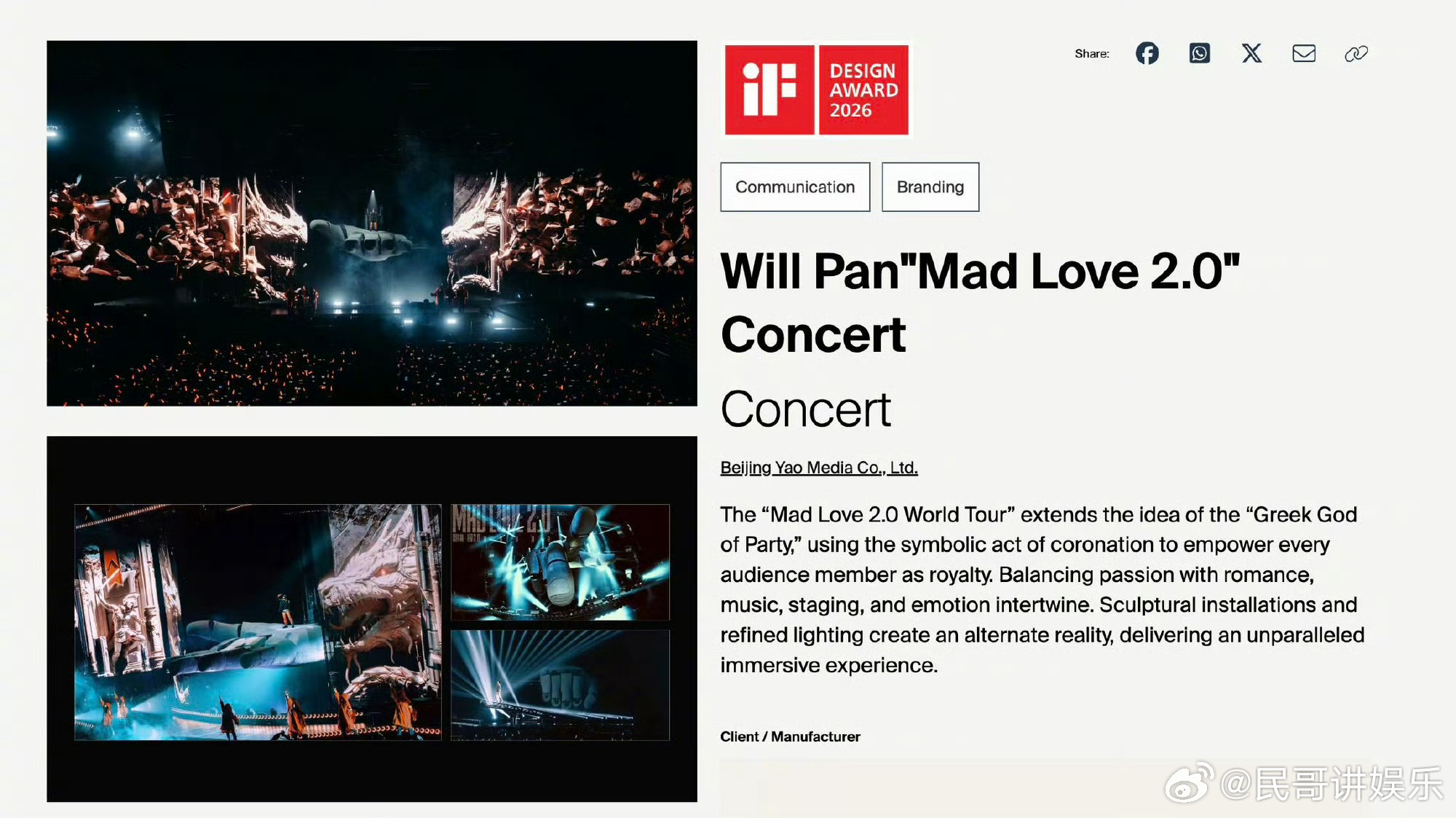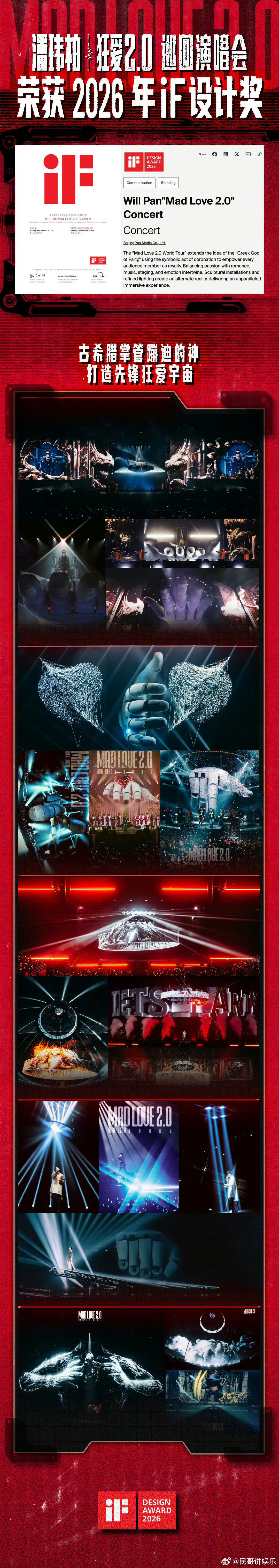 潘玮柏演唱会舞美获国际大奖 恭喜潘帅!其演唱会舞美凭借雕塑光影和巨型机械装置,斩获德国iF设计奖,为歌迷带来视听双杀体验,不愧是潘玮柏的演唱会🎊 潘玮柏狂爱演唱会获iF设计奖
