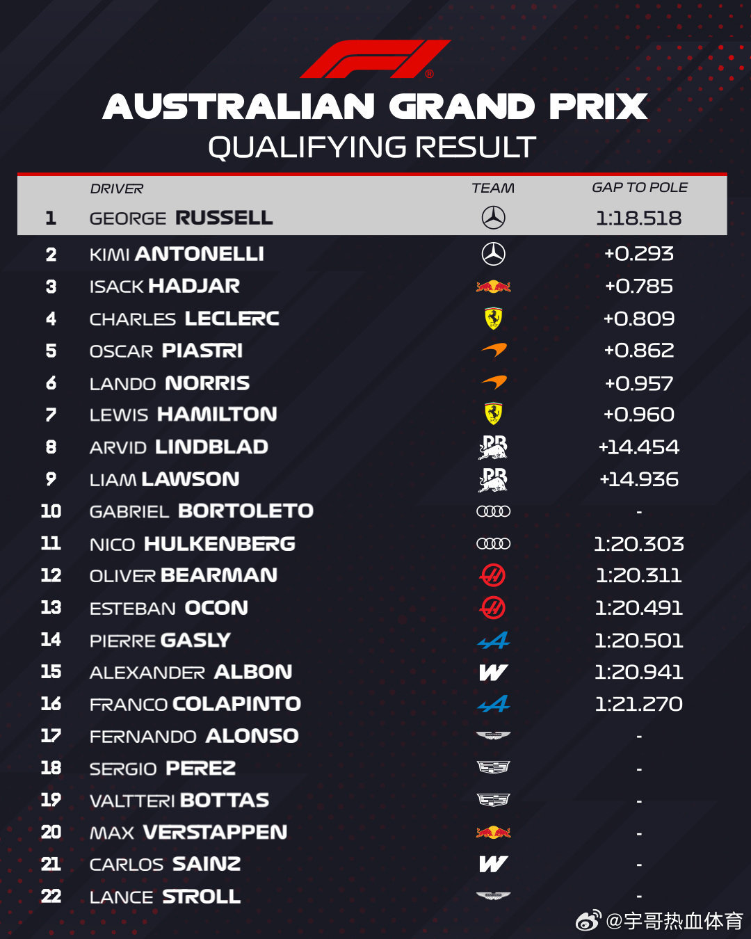 开年第一站的排位赛就这么刺激,有点儿期待明天中午的正赛了。F1f1澳大利亚大奖赛