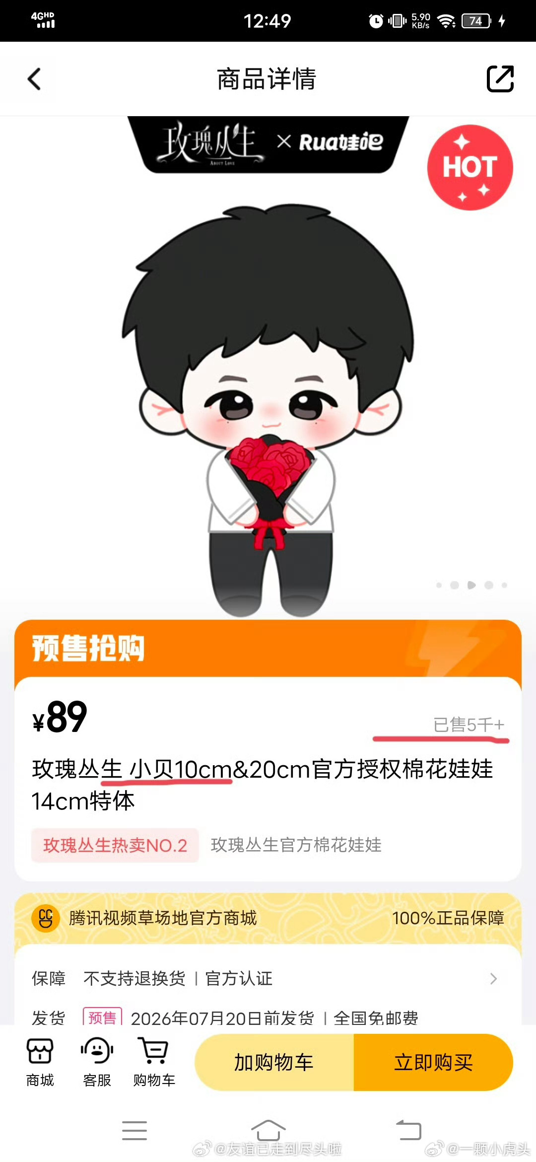 《玫瑰从生》周边小贝娃娃销售量都破5000➕,刘宇宁粉丝氪金这块不含糊。