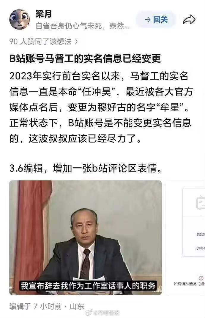 马前卒宣布辞去话事人的职务,更改了自己账号的实名信息迷惑行为大赏
