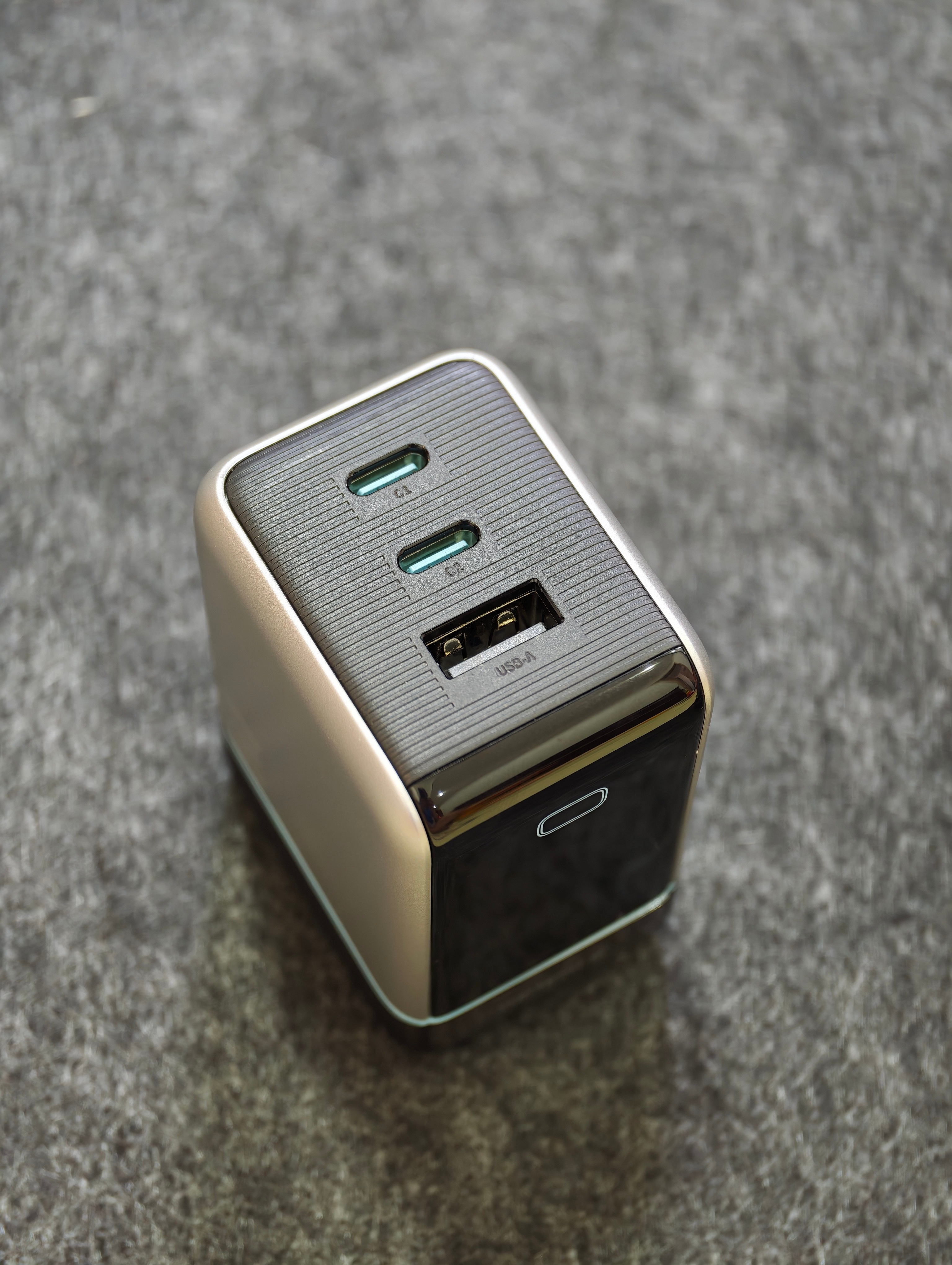 - 外观方面,“灰蓝黑”经典配色依旧没变,但这次显示屏加上Cool Bot趣味表情,终于不那么直男感了。拥有多种动态表情,对应不同充电状态,还能实时查看各个端口充电数据(功率、电流电压),兼顾情绪与实用价值。