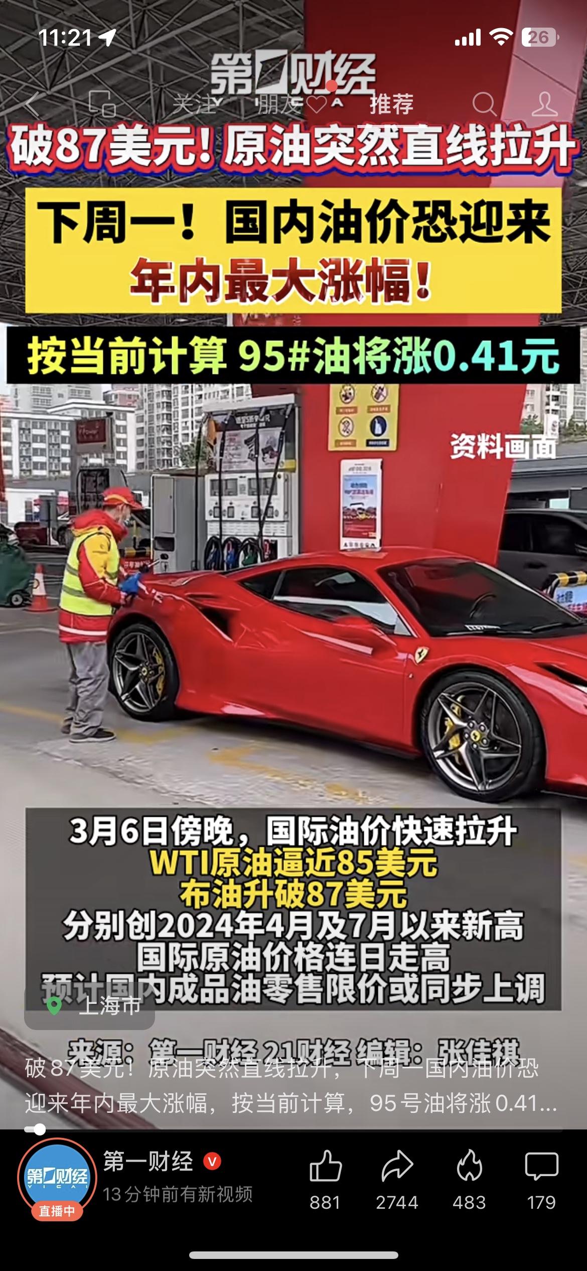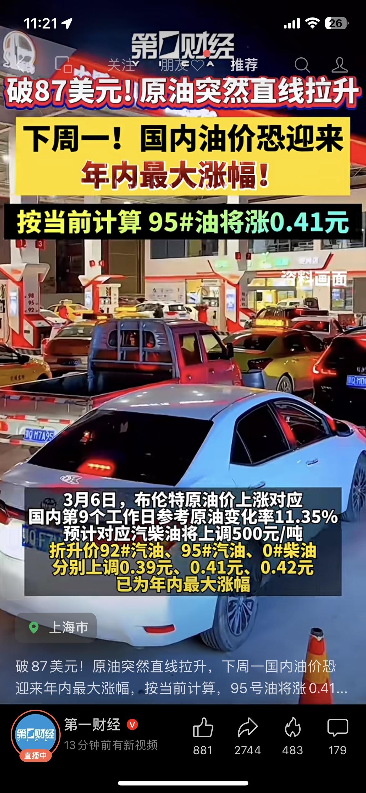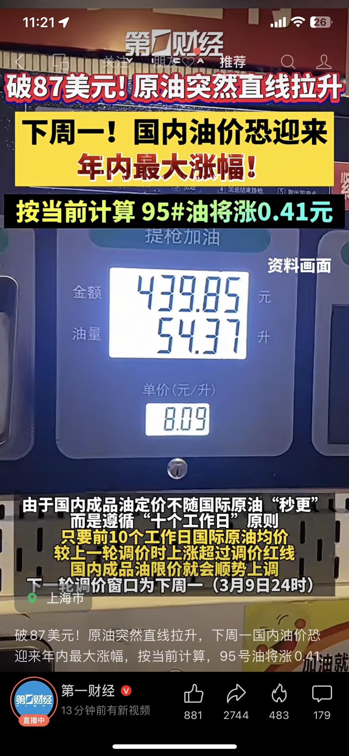 加满一箱多花27块!美油一周暴涨35.6%,创40年纪录,国内油价下周一迎年内最大涨幅,95汽油每升涨0.41元。 我妈今天去加油,看到价格后直接把车开回了家,改骑电动车买菜。油价一涨,快递、外卖、超市物价都会跟着动,这波压力每个人都躲不开。 油价 民生 财经