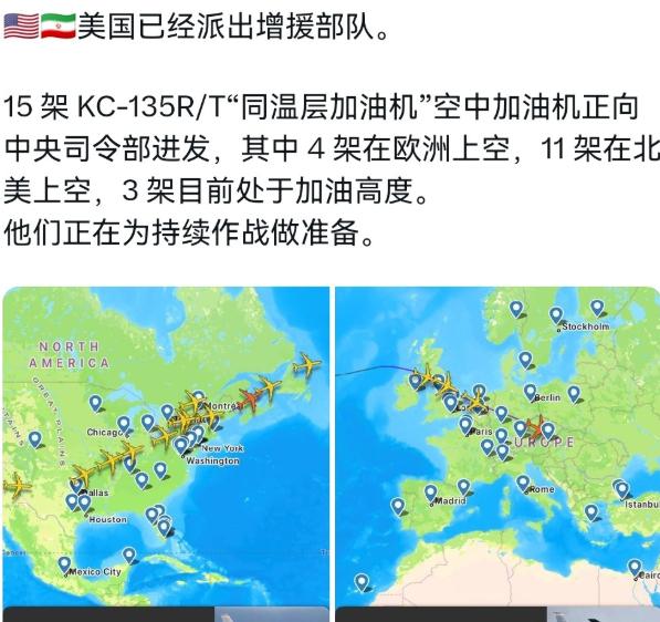 低估了伊朗!美国不得不启动“添油”战术了!3月3日,外媒报道称,美国已经派出新的援军了,15架KC-135R/T空中加油机正向中央司令部移动,4架在欧洲上空,11架在北美上空,3架目前在加油高度。美国正在为持续的行动做准备。很显然,美国的这一军事动作意味着什么呢?   一句话,美国的速战速决的构想破产了,美国最开始为闪电打击伊朗准备的军事部署已经完全不够用了,美国不得不进行增兵。   美国这波增派15架KC-135R/T空中加油机的操作,明眼人一看就知道,所谓的闪电打击伊朗纯属空想,速战速决的算盘彻底打空了。这些加油机可不是来凑数的,4架在欧洲上空待命,11架从北美往中东赶,还有3架已经处在加油高度,每一架都是在给这场打不下去的冲突“续命”。   KC-135这款老加油机可不简单,服役半个多世纪还在挑大梁,最大能装近11.8万升燃油,够给11架F-35或者8架F-22加满油。美国当初规划军事行动时,肯定没算到要这么多加油机兜底。原本以为凭借F-35、F-15的隐身和打击能力,加上B2轰炸机的钻地弹,再配合海上的战斧巡航导弹,几天就能打垮伊朗的抵抗。可现实是,这些先进战机飞出去就面临续航难题,因为伊朗的反击让美军不敢轻易缩短作战半径。   伊朗的实力完全超出了美国的预判。谁能想到这个国家藏着8万架沙赫德-136自杀式无人机,日产能还能达到400架。这些无人机成本才5万美元一架,飞得低还不容易被探测,专门用来消耗美军的拦截弹。美军的萨德、爱国者系统,拦截一枚来袭目标得发射两三枚拦截弹,每枚拦截弹造价动辄上百万美元。这么打下去,美军的拦截弹库存撑不了两周,现在已经有人提议要动用亚太地区的库存了。除了无人机,伊朗还有2500枚弹道导弹,巡航导弹库存也有800枚,月产能200枚,完全能实现持续打击。   更让美国头疼的是伊朗的防空部署。他们把俄制的S300、道尔M1和自研的霍尔达德防空系统分散开来,不再集中保卫首都,而是重点守护导弹发射阵地和存储仓库。这种部署让美军的电子压制效果大打折扣,先进战机也不敢贸然低空突防。美军原本想通过电磁压制踹开防空大门,结果现在自己的战机得时刻保持高空飞行,航程和滞空时间自然大幅增加,加油机的重要性就凸显出来了。   伊朗的反击不仅有规模,还精准打击了美军的软肋。开战没几天,美军在伊拉克、科威特、巴林、卡塔尔和约旦的基地都遭了殃。巴林的第五舰队总部被摧毁了两个卫星终端,科威特的空军基地建筑物屋顶坍塌,甚至有6名美军士兵死于伊朗无人机袭击。更麻烦的是,美国驻沙特、约旦的大使馆接连遇袭,不得不撤离非必要人员,这让美军的前线指挥和后勤保障都受影响。   美国现在陷入了两难,想扩大战事却没底气。国会已经在推动战争权力决议,想限制总统未经授权就升级行动。虽然共和党掌控两院,这项决议大概率通不过,但也能看出美国内部的分歧。没人想再陷入一场长期战争,毕竟伊拉克、利比亚的教训还历历在目。伊朗有近9000万人口,国家制度成熟,伊斯兰革命卫队深度参与国家运转,靠轰炸根本实现不了政权更迭,反而会点燃民族主义情绪,让伊朗上下更团结。   更关键的是,美国的战略重心本想向印太转移,现在却被中东绊住了脚。抽调加油机、航母战斗群到海湾地区,导致亚太方向的军事存在出现真空。这种拆东墙补西墙的操作,让美国的全球战略顾此失彼。而且霍尔木兹海峡的航运安全受影响,全球20%的石油贸易要经过这里,冲突升级只会让油价飙升,反噬美国自身的经济。   这些加油机的到来,不是战争要升级的信号,而是美国被迫“添油”的无奈之举。原本想速战速决,结果变成了消耗战。伊朗用低成本的无人机和导弹,对抗美国的高精尖武器,硬生生把战争拖到了美国不擅长的节奏。美国现在既不能轻易撤军,那样会丢了颜面,又不能大规模增兵,怕陷入更深的泥潭。只能靠加油机维持战机的持续部署,一点点加码。可伊朗的弹药库存还很充足,地下工事里的无人机和导弹还能持续供应,这场“添油”战术,恐怕会让美国越陷越深,想拔腿都难。