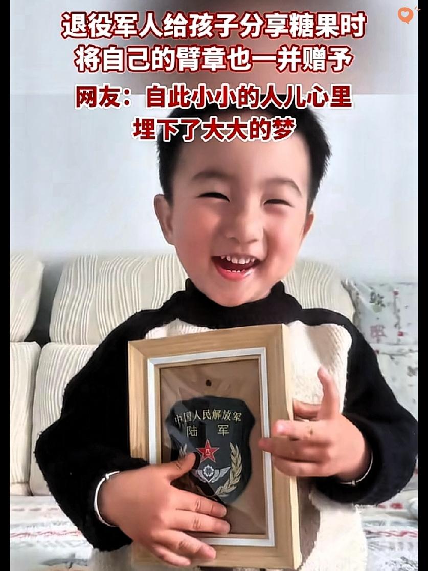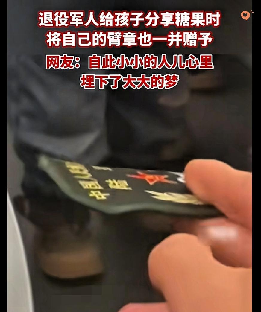 这一幕直接暖到心坎里! 江西火车上,退役军人递糖果遭小朋友“无视”,转头送臂章却让娃笑开颜,网友那句“他把臂章给了儿时的自己”太戳人! 小朋友盯着军装眼里发光的样子,藏着最纯粹的崇拜——糖果能甜一时,可军装背后的安全感、使命感,能在心里甜一辈子。 退役军人的通透更让人动容,他看懂了孩子的向往,用一枚臂章种下红色种子,这哪里是简单的赠予,是信仰的接力啊! 其实英雄从不是遥远的符号,而是穿军装的普通人,是孩子眼里“最靠谱的好人”。 这种无需言说的信任,是军民同心最真的模样,也让正直担当的种子,在下一代心里悄悄发芽。 你小时候有没有过崇拜军人的瞬间?评论区说说那些让你心生敬意的画面~