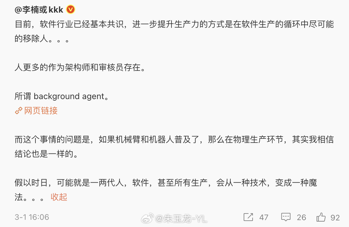 从软件行业开始,按照现在的趋势,制造业各个环节,人也在被慢慢移出