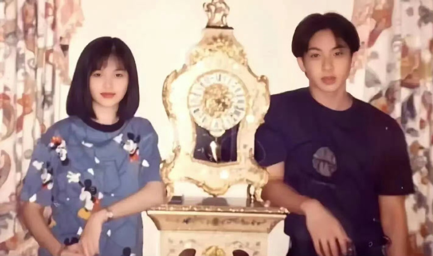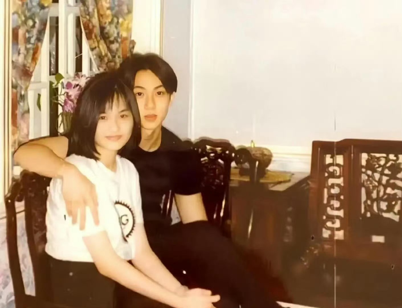 吴尊16岁时和太太的合照,林丽吟相貌平平但家境优越,如今已相携度过24个春秋