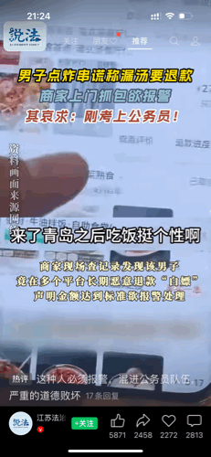 山东青岛,一男子点了外卖炸串,收到后,却谎称汤汁漏了,要求退款。店主上门找到男子,发现食物没问题,而且还发现男子手机上多次退款,准备报警。男子哀求:别报警,我刚考上公务员。 网友:必须报警,这种人道德败坏,不能混进公务员队伍。 山东青岛,张先生开炸串店有些年头了,店面不大,但生意挺好的。他看许多店铺也在外卖平台上卖货,便也加入了好几个平台。 别说,自从加入了外卖平台,生意还真好了不少。经常是忙得脚不沾地。 可最近,他遇上了一件让他哭笑不得的事情。 这天傍晚,外面下着雨,来店里的顾客不多,他正好闲着无事时,突然手机上收到一条消息,有人在他家点了份炸串。 张先生马上把炸串制好,考虑到下雨天张先生还特意地把炸串多加层外包装。并叮嘱骑手注意别洒了。 谁知餐刚送出去没十分钟,手机就弹出退款申请,理由是汤汁漏了,没法吃。 张先生马上打电话询问外卖小哥,小哥说东西送过去好好的,一点没出问题。 张先生感到很疑惑,顾客说东西洒了,外卖员说正常。那么肯定有人在说谎。 刚好张先生这时候不忙,他决定亲自去弄个清楚。 张先生骑车赶到顾客的住所,敲门说明身份,但顾客犹犹豫豫不肯开门,张先生便说炸串洒了是他的错,重新给他送了一份来。 小伙子于是打开了门,张先生进门一看,肺都气炸了,桌上的炸串袋子完好无损,还摆着炸串。小伙子正津津有味地吃着,还一边喝着。 张先生当场就明白了,这是遇上吃白食的了。他没急着发火,而是问小伙子怎么办。 见张先生追问,小伙子便答应取消退款。 然而万万没想到,就在小伙子按照张先生的要求取消退款时,张先生发现小伙子的手机里,退款列表长长一串,理由全是汤汁漏了、包装破损、撒漏严重,金额都不大,二三十块钱,但隔三差五就有一单,涉及好几家店,有的退了,有的还在等。 张先生看到这列长长的退款记录,气不打一处来,感情这小伙子是白嫖专业户啊,于是张先生坚决要报警。 一听警察要来,小伙子脸都白了,赶紧道歉,说自己一时糊涂,求张先生网开一面。 可张先生没有打算就这样放过小伙子,坚持要报警,这时候小伙子彻底慌了,这才说出实情。 原来他刚考上公务员,还在试用期。这事被警方处理了,肯定会通知到单位,工作肯定保不住了。 张先生听完沉默了一会儿,想着对方年纪轻轻,刚考上编制,给他一个机会吧。 最后他没追究,只让小伙子把之前那些店的退款都还回去。 对此,不少网友都认为老板做的太宽容,对于这种人应该严肃处理。也有网友说,老板做生意要和气生财,如果真的报警,小伙子工作没了,怕小伙子会来捣乱。 勿以恶小而为之,希望这位年轻人真的能改过,不是每次都会遇到像张先生这样的老板。 小编认为,此事应该报警,大家认为张先生的做法对不对? 取材网络,侵删,个人观点,仅供参考。