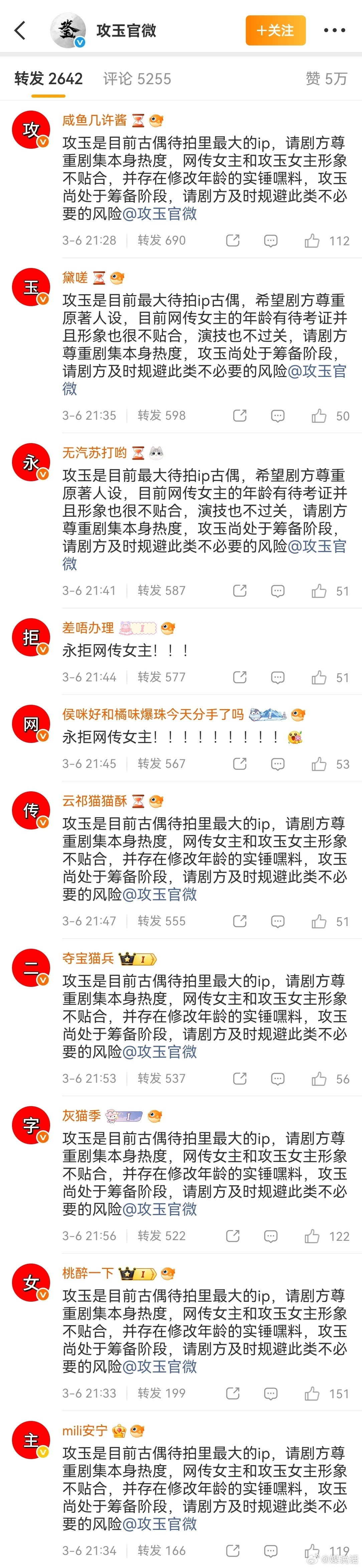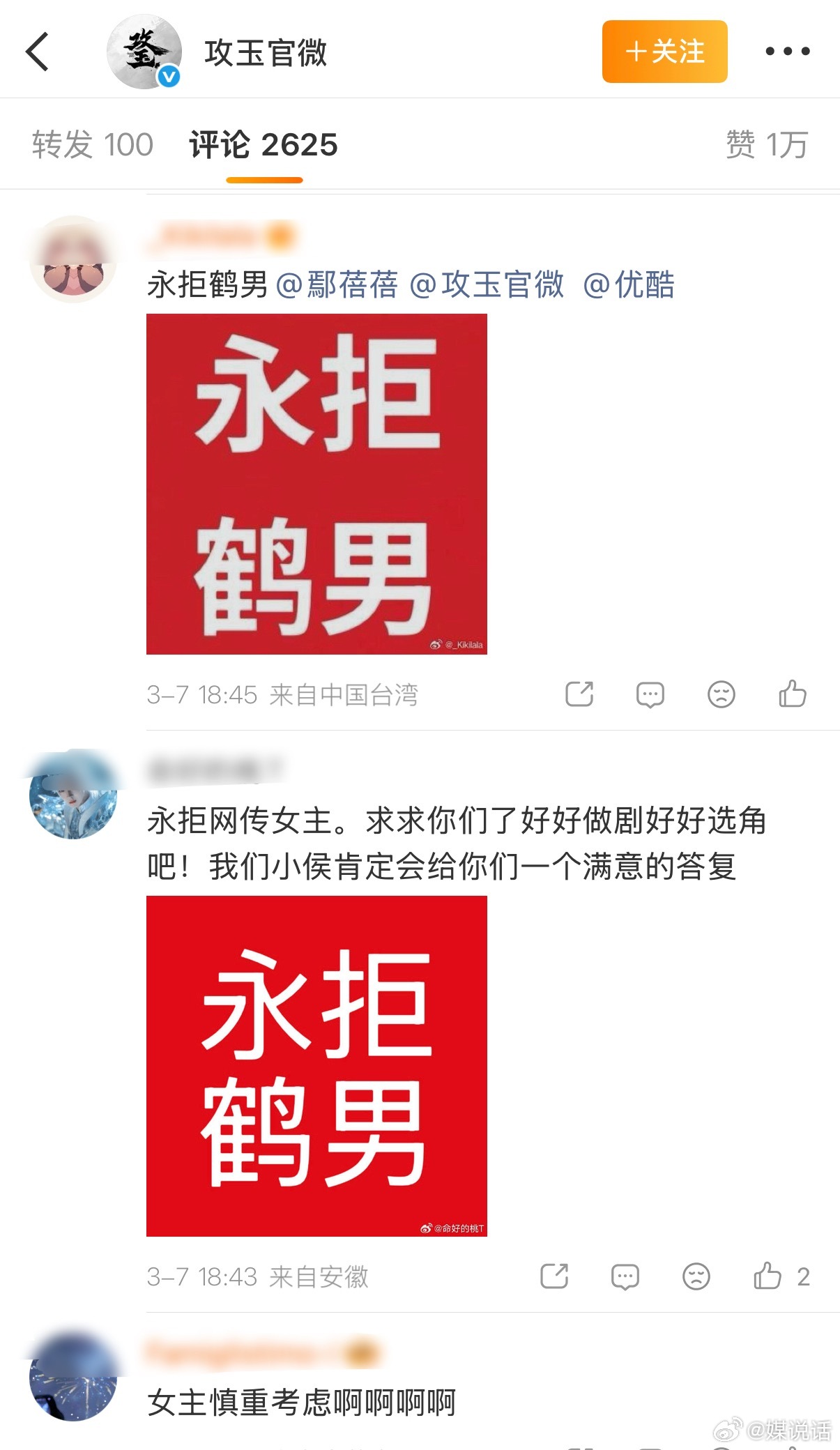 侯明昊粉丝在《攻玉》官博排字抵制女主鹤男,怎么回事?