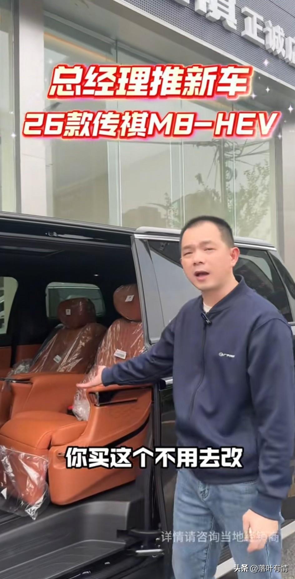 谁能想到现在连4s店的总经理都要推新车了,平时总经理压根不来, 但是这辆广汽M8HEV, 他非要给大家讲讲! 原因就是这辆车非常的豪华, 但是它的性价比非常高, 价格只需要19万多, 如果有旧车抵的话更便宜, 关键这辆车还是混动, 意味着你不仅可以用电,还可以用油, 两套系统更加能保证你的续航, 整车续航能达到1000km, 最为关键的是电动侧门, 第二排简直是豪华按摩, 坐上去根本不用去按摩院, 在车里就可以享受一顿SPA, 更让人欣喜的是它的安全性非常高, 全车配备了安全气囊, 后备箱也足够的放东西, 这种车就适合长途旅行。 而且它还配备了米其林轮胎, 可以说是轮毂也豪华,轮胎也非常耐用,一车传三代,人走车还在, 信不信由你,有兴趣就可以去试驾!