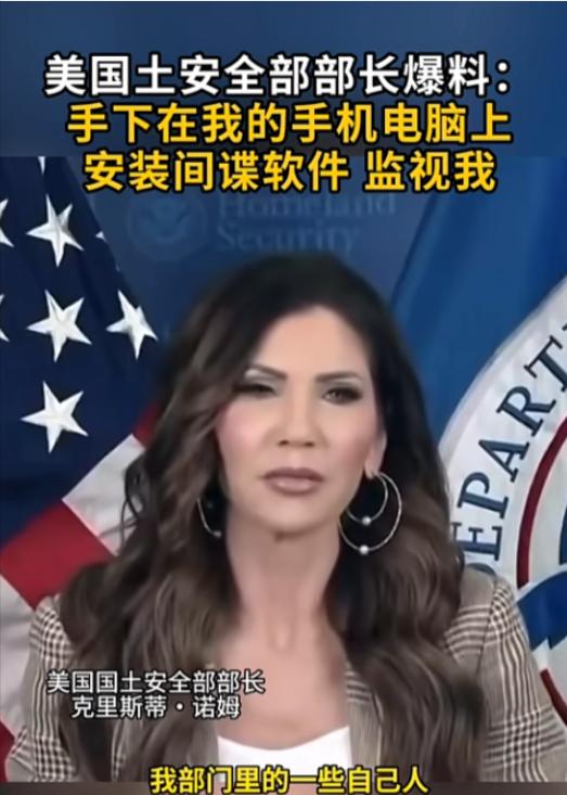 美国政坛彻底炸锅!国土安全部长亲自爆猛料,自己人竟在她手机、电脑偷偷安装间谍软件,24小时不间断监视,一举一动全被掌控,连部长本人都直言细思极恐,这波操作简直颠覆认知,离谱到不敢信。   这场风波的核心人物,正是手握美国国土安全大权的部长克里斯蒂・诺姆,她所在的部门本是全美反间谍、网络防护、反恐维稳的核心机构,本该是替国家守住安全防线的角色,可她怎么也不会想到,最危险的窥探者根本不在境外,就藏在自己朝夕相处的工作团队里。   要知道国土安全部本是美国安全体系的核心,2001年9·11恐袭后成立,整合了20多个联邦机构,小到机场安保、灾害应对,大到边境管制、反恐维稳,连保护总统的特勤局都归它管。作为全美第三大联邦部门,手握这么多重权的部长,本该是防范间谍的第一道防线,却栽在了自己人的手里。   克里斯蒂·诺姆能坐上这个位置,本身就带着强烈的政治烙印。2025年1月,她以共和党保守派的身份,在参议院59票赞成的情况下上任,核心任务就是推行特朗普政府的强硬移民政策。但这个职位从来都是烫手山芋,国土安全部管的事太杂,权力又太集中,自然成了各方势力角力的焦点。诺姆的麻烦从一开始就没断过,明尼阿波利斯的移民执法行动出了人命,她的表态引发全国抗议,后续曝光的证据还和她的说法相悖。更要命的是,她牵扯进一笔2.2亿美元的宣传广告合同,声称得到总统批准,结果被白宫当场否认,这让她在内部彻底失去了信任。   内部监视的发生,本质是权力斗争的极端表现。美国政坛的极化早已不是秘密,两党之争渗透到每个联邦机构,就算是同一党派内部,也存在不同派系的倾轧。诺姆作为强硬路线的执行者,一边要应对民主党人的弹劾压力,一边要面对共和党内部的不满。多名曾经支持她的共和党参议员后来公开呼吁她辞职,说她领导的国土安全部是“一场灾难”。在这种腹背受敌的情况下,有人想通过监视掌握她的把柄,或是干扰她的决策,也就不难理解。   更讽刺的是,这种内部窃密在当前美国政府体系里并非孤例。国防部此前就爆出“信号门”,防长赫格塞思用非加密的私人软件分享美军作战计划,还违反联邦记录法,导致多名下属被撤职。国务院为了精简成本,一口气砍掉132个办事机构,裁员15%,引发内部人心惶惶。这些事件串在一起,能看出美国联邦机构的内部管理已经乱了套。本该相互监督的机制,变成了相互拆台的工具。   国土安全部自身的职能矛盾也为监视提供了可乘之机。这个部门既要负责反间谍和网络防护,又要执行移民、边境等争议性极强的政策。内部机构众多,人员庞杂,20多个原属不同系统的机构被强行整合,本身就存在协调不畅、派系林立的问题。想要在这样的部门里安装间谍软件,并不需要太复杂的操作。毕竟,负责网络安全的人和执行具体政策的人可能分属不同派系,只要有内部人员配合,就能绕过本该存在的防护措施。   这场监视风波的影响远不止于诺姆个人的去留。2026年3月,特朗普宣布诺姆转任特使,由他人接任国土安全部长,看似常规的人事调整,实则是这场内部斗争的收尾。但问题的根源并没有解决,党争还在继续,联邦机构的内部裂痕还在扩大。当负责国家安全的核心部门,连自己的部长都无法保护,当内部人员把间谍手段用在同事身上,所谓的国家安全防线,早已从内部出现了崩塌的迹象。   这起事件最让人唏嘘的地方在于,美国一直标榜自己的安全体系多么完善,却连最基本的内部信任都无法建立。国土安全部的职责是防范外部威胁,可现在最危险的威胁来自内部。这种自己人对付自己人的闹剧,不仅消耗着政府的行政效率,更透支着公众的信任。当权力斗争凌驾于国家安全之上,当窃密行为在政府内部变得常态化,这样的混乱还会以不同形式不断上演。