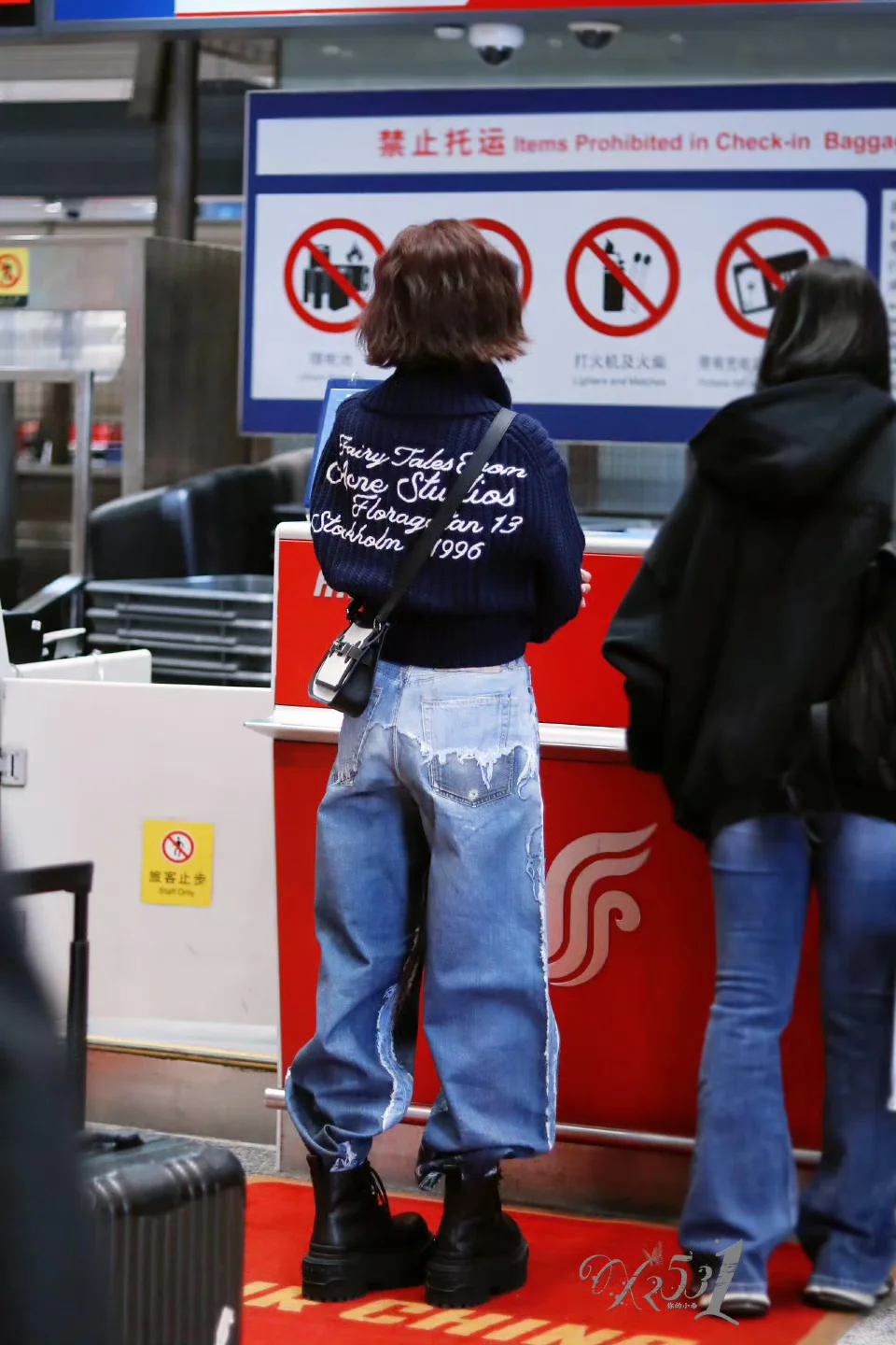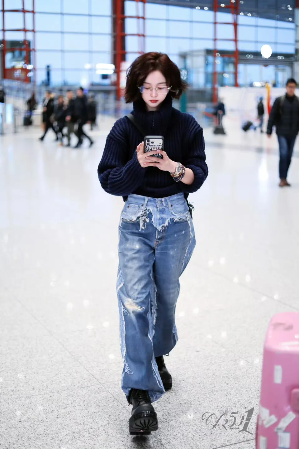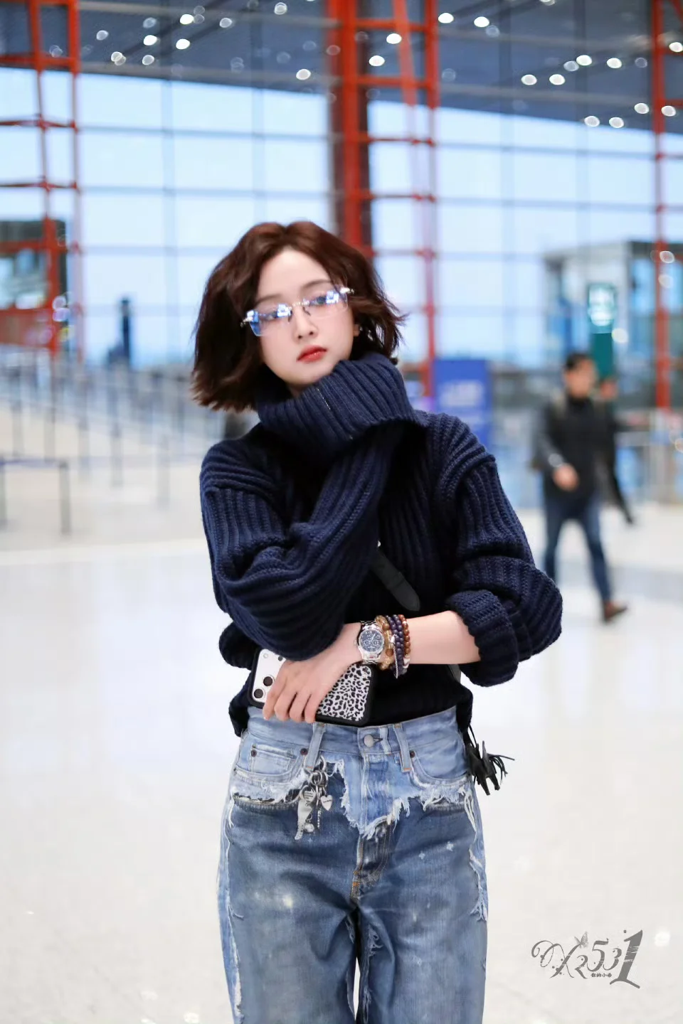 吴宣仪机场,短发一整个精致干练起来