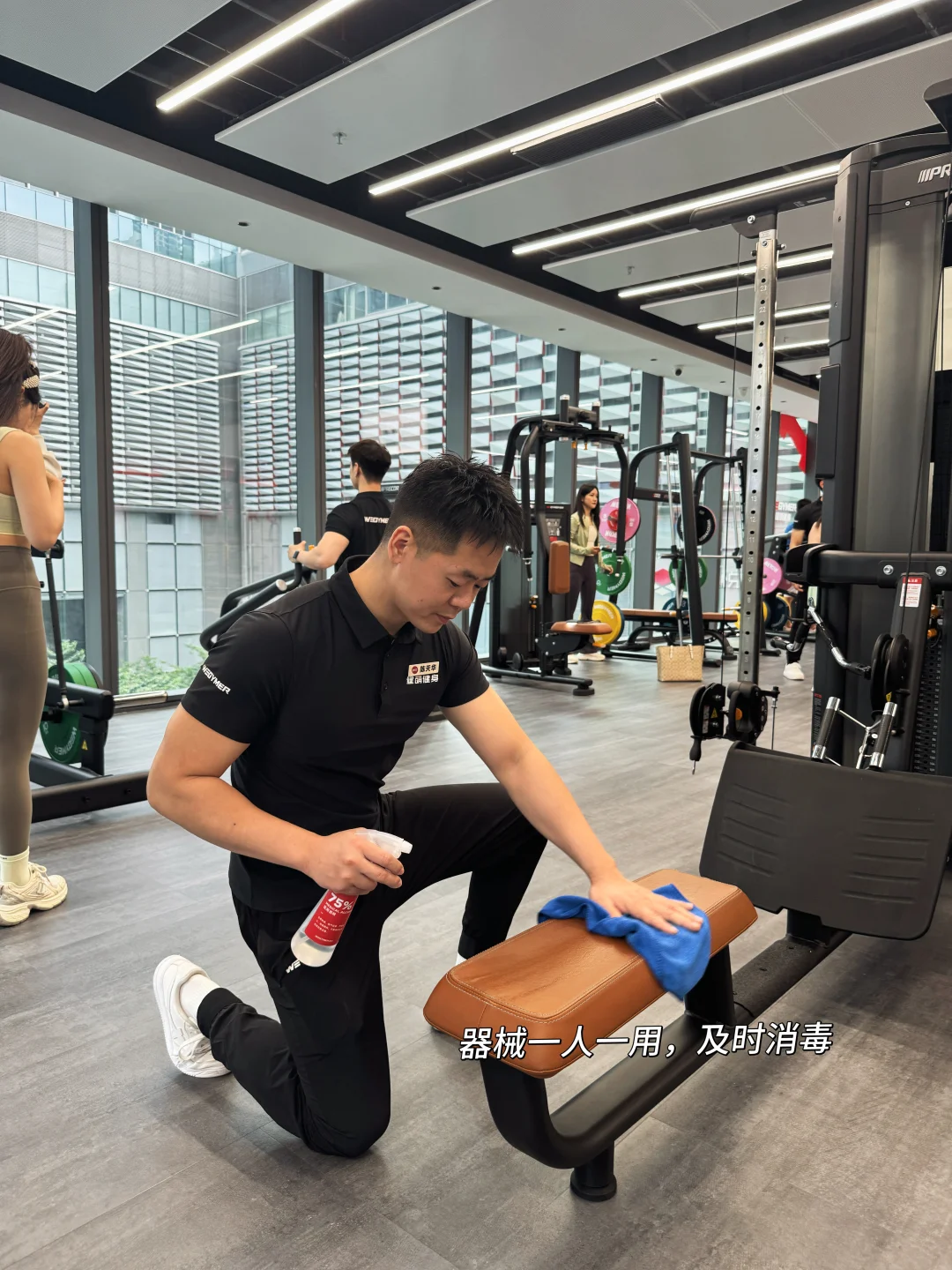关键所有的器械都是一用一消毒的,完全不用担心在健身房碰到什么“脏东西”