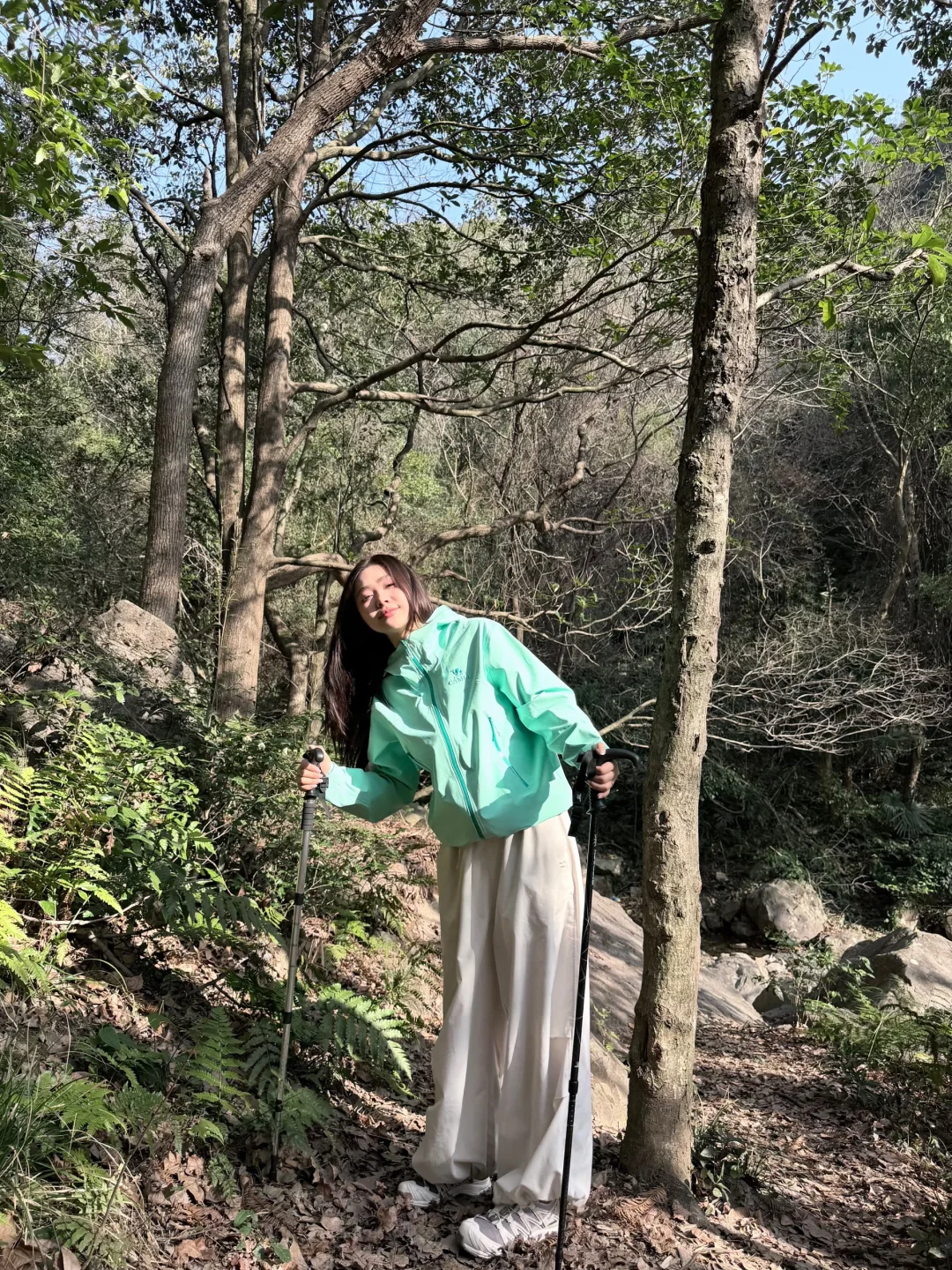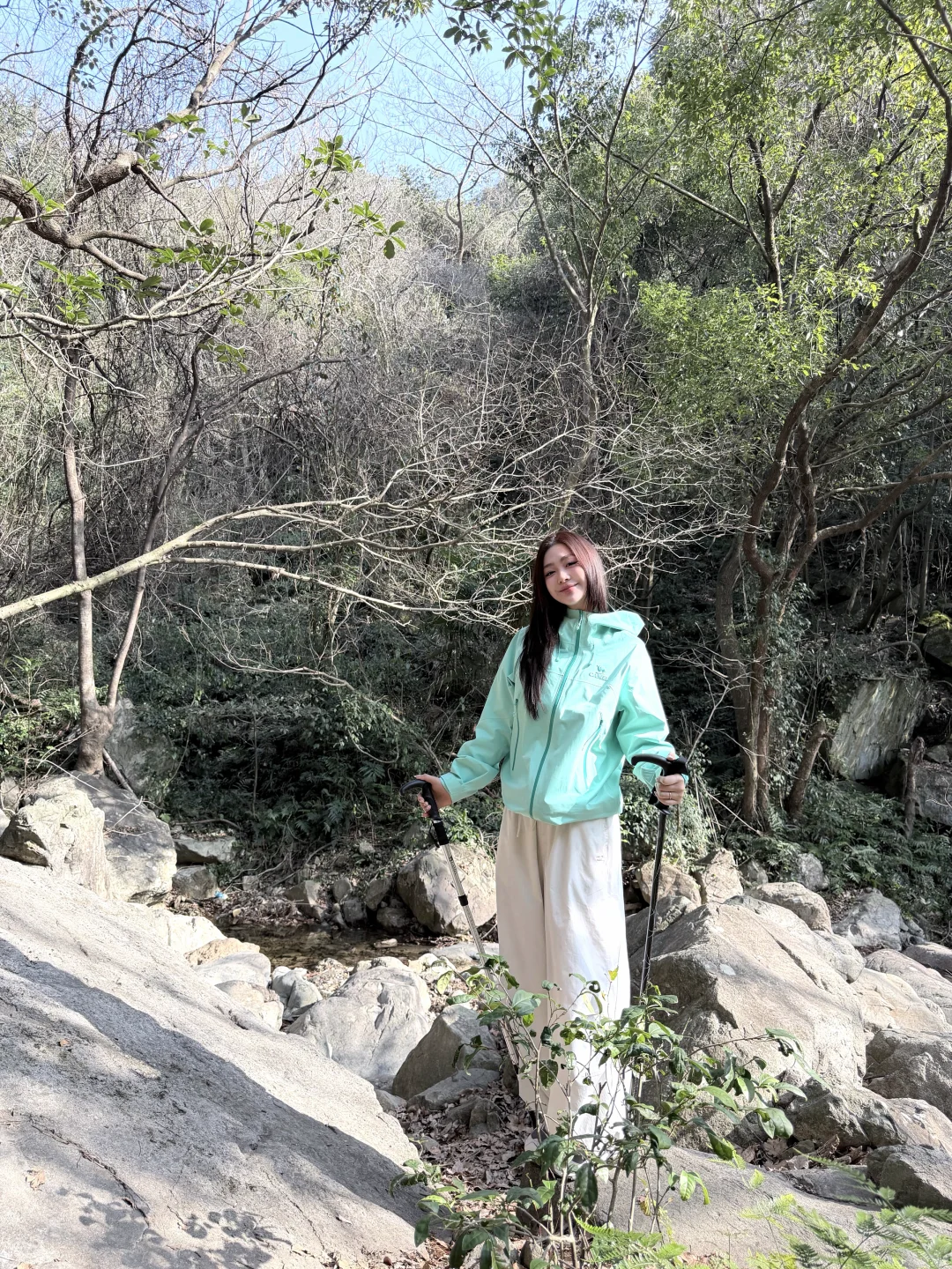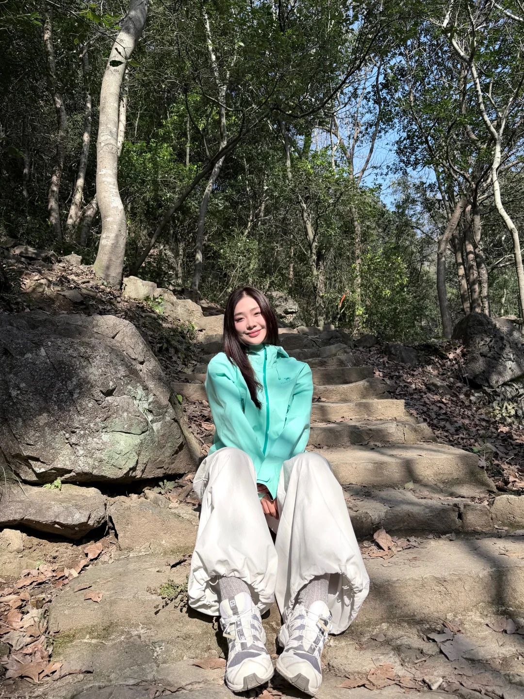 累了就坐在岩石上歇脚,看阳光透过树叶洒下斑驳光影