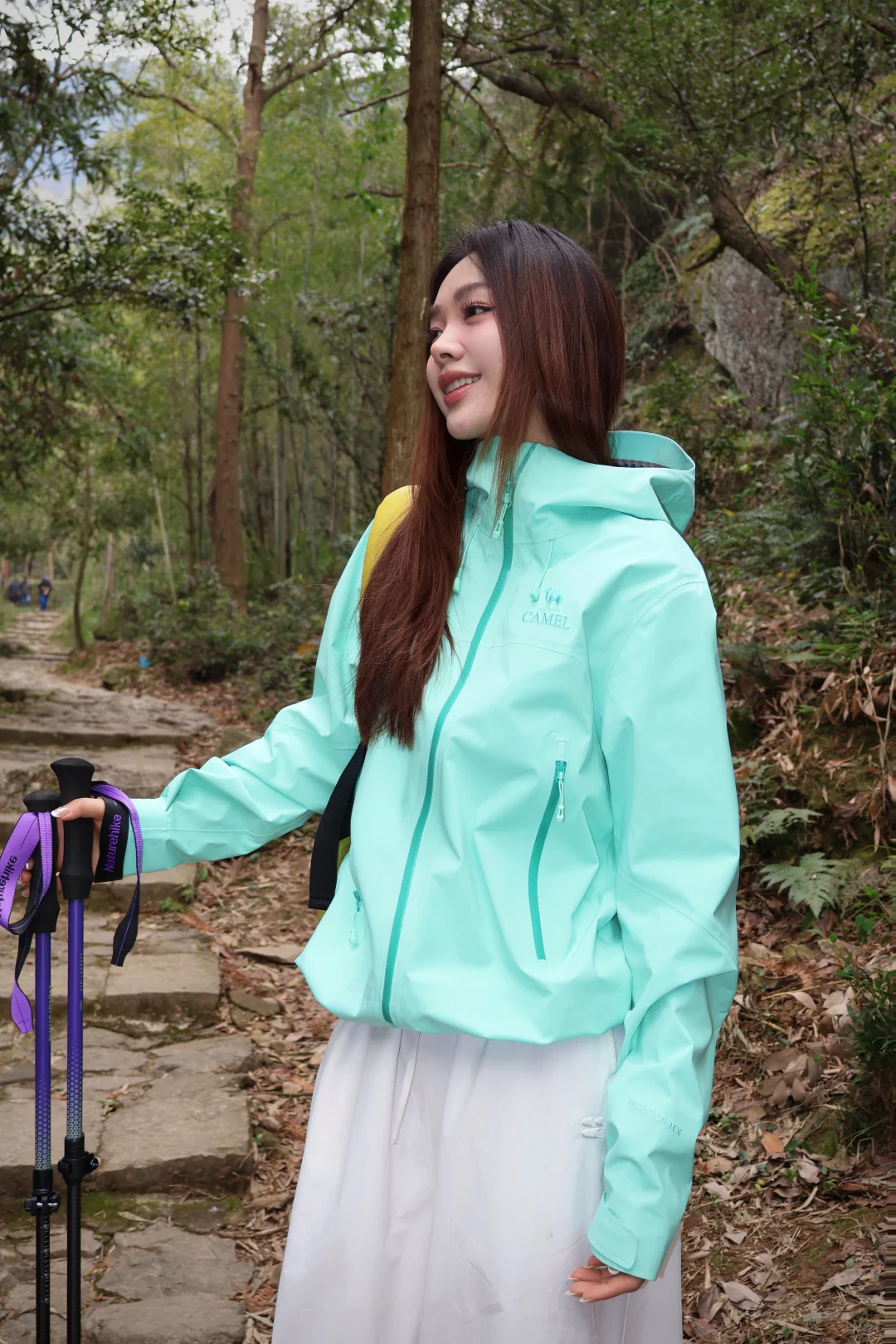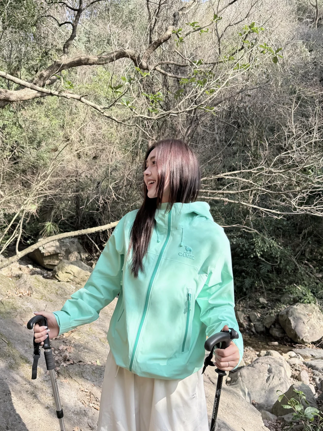 ▪️现在的天气还是需要冲锋衣,这次一起出行的是骆驼冲锋衣王者凯甲Pro,3L硬壳防风防水效果很好,防水19420mmH₂O,后面雨季去户外也不担心了~