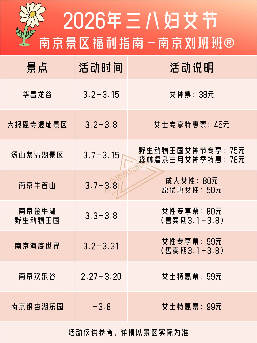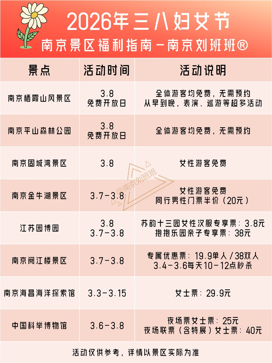 🎁2026年南京近20家景区妇女节活动公布啦,免费或半价,快快安排起来,享受这波福利吧~