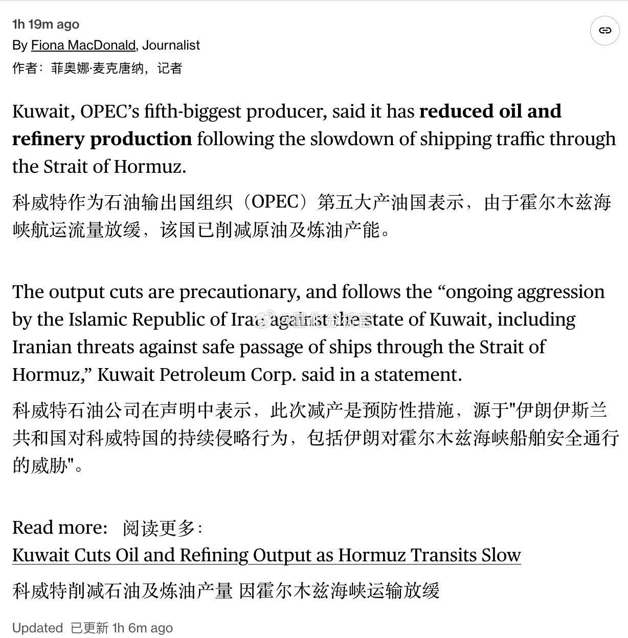 科威特也加入了停产计划,川普的降价喊话也和放屁没区别了伊朗以色列