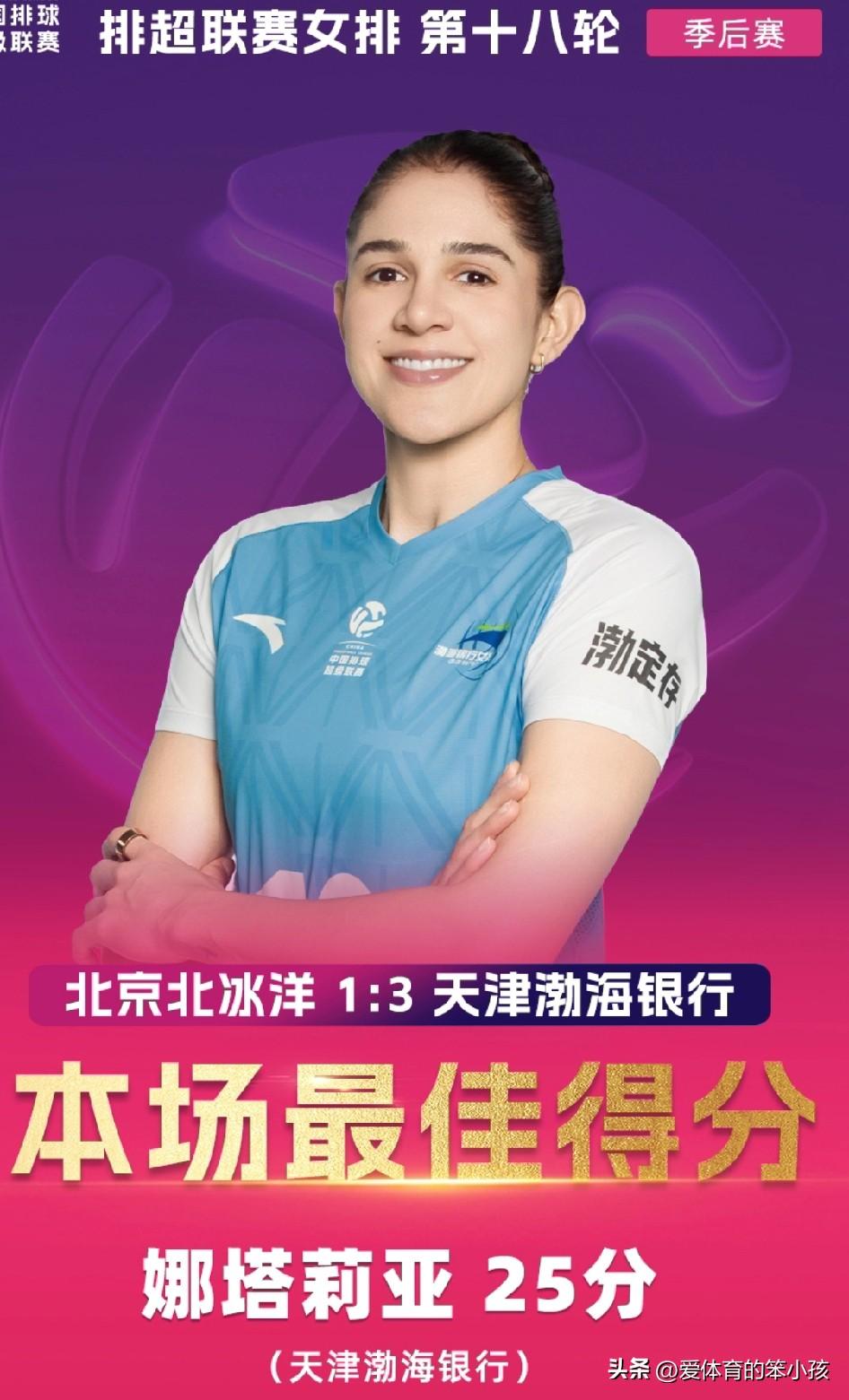 全国女排超级联赛第18轮季后赛的一场比拼,北京北汽女排坐镇主场迎战天津渤海银行女排的比赛,尽管北汽女排和上次与上海光明优倍女排交锋时一样,在比赛中赢了一局,而且看起来在场上气势挺足,但是整场比赛他们的起伏还是有些明显,有些关键局关键分把握最后得分能力的实力厚度和比赛心态、稳定性也和传统强队,以及多赛季的联赛冠军天津渤海银行女排小有差距?这导致他们中间赢了一局的情况下,还是在其他三局连续暴露问题,遭遇一场1:3的失利。而天津渤海银行女排则就此拼下一场关键胜利。双方四局的具体比分是16:25、25:23、21:25和19:25。 其实每局比赛当中我们都能感觉到,天津渤海银行女排在整体比拼中还是属于占据优势的一方。即使他们输球的第二局,也在大部分时段没有出现比分明显落后的情况,比如第一局天津女排一上来就拿到8:3的比分领先,中局阶段也继续扩大领先优势,来到16:6,并在局末持续拉开分差来到21:10,从而以25:16的总比分先赢一局。 即使第二局两队比分咬的比较紧。从开局到中局阶段,分差始终在1~3分之间,不过打到20分之后,确实北汽女排在这局的发挥还是比较稳定,也拿到21:19和23:21的小幅比分领先,并以25:23的比分依靠关键分上的稳定发挥确保拼下一局。将双方大比分追平。 但第三局和第四局的比拼当中,北汽女排又是开局就比分落后,中局阶段也直接被天津渤海银行女排以16:13和16:9在这两局当中都直接拉开分差,并在局末阶段进一步扩大领先优势来到21:17以及21:16,并分别以25:21和25:19的比分赢下第三、四局,从而确保球队拿到一场3:1的客场胜利。 这场比赛,北汽女排这边真正发挥好的就是小将董禹含,此役她个人贡献17分,只不过在这场比赛当中,她又一次在伤病恢复时间相对较短的情况下遭遇了新的伤病。甚至坐在场边进行治疗时,我们也能看见她脸上的痛苦表情并且流出了眼泪,哭的梨花带雨,让人看起来颇为心疼,也让人为这位年轻的国手未来的职业生涯如何更得到健康的延续有点担心。外援法布里斯也在这场比赛个人拿到12分,而北京队其他球员未能实现得分上双。 反观天津渤海银行女排,在前面几轮的表现有所起伏的情况下,此役还是打出了很好的竞技状态,特别是老将杨艺的回归,即使她在场上甚至一分未得但是一传保障环节的能力又一次得到了体现,甚至充当了另外一种意义上的自由人的角色。而她的几位进攻端表现不俗的队友同样贡献出色发挥,特别是外援娜塔莉亚贡献了全队最高的25分。王艺竹拿到21分,打到接应位置的刘美君也得到17分,另一位外援马丁内斯也有9分进账。 这样的一支天津女排,即使同样比赛中有所起伏,但是,经过阵容调整和适当的位置变化之后的天津女排,还是逐步打出了一些传统强队的底蕴和风采以及阵容厚度。让我们再次恭喜他们,并一起看看他们在后面会不会越战越勇,争取更出色的发挥,特别是在不背包袱的情况下,全力争取在本赛季取得更好的成绩。